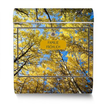 Der banjado Edelstahl Standbriefkasten mit Motiv Wipfel und eigenem Wunschtext bietet Ihnen mit seinem Fassungsvermögen genügend Platz auch für große A4 Sendungen. Das integrierte Zeitungsfach eignet sich hervorragend, um unkompliziert die Tageszeitung zu fassen.