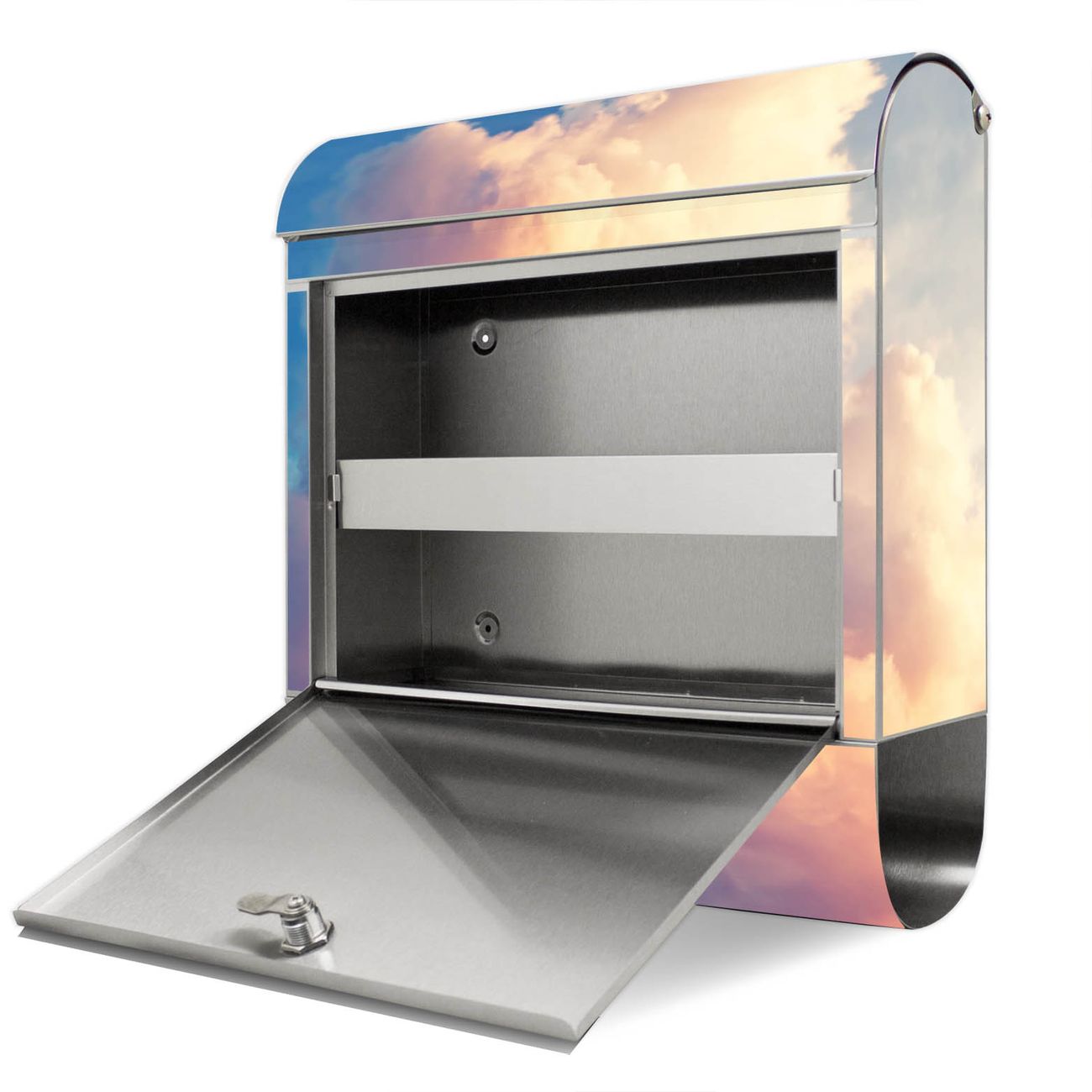 Der banjado Edelstahl Standbriefkasten mit Motiv Wolken 10 bietet Ihnen mit seinem Fassungsvermögen genügend Platz auch für große A4 Sendungen. Das integrierte Zeitungsfach eignet sich hervorragend, um unkompliziert die Tageszeitung zu fassen.
