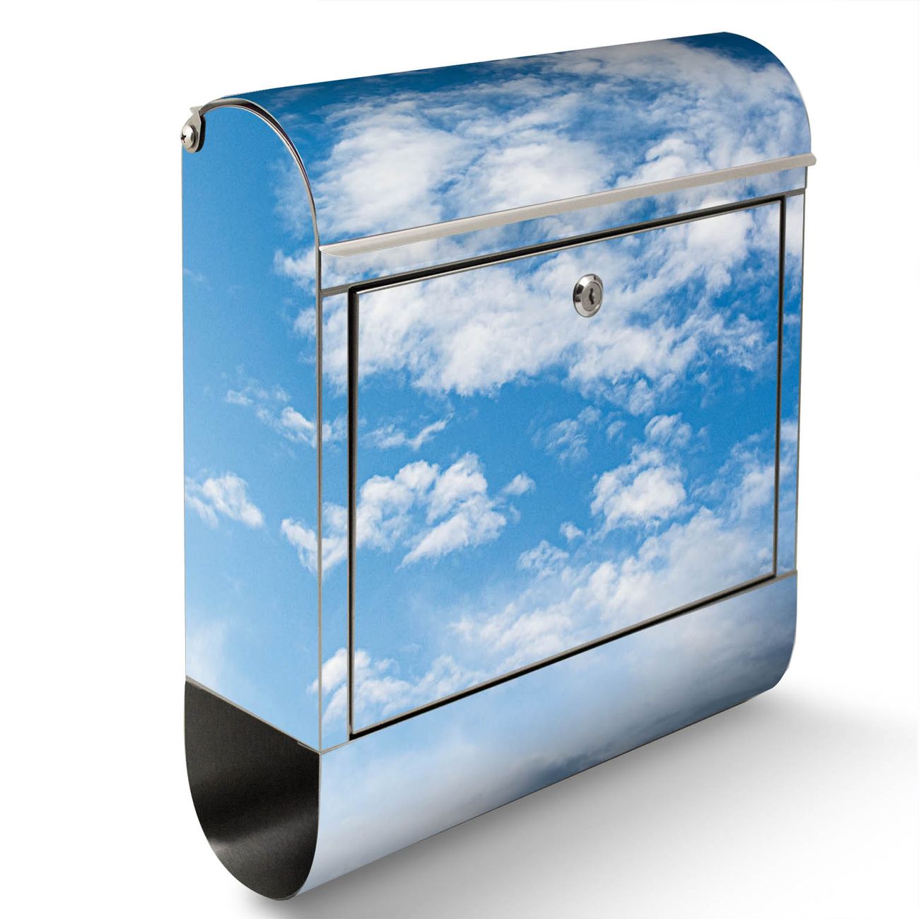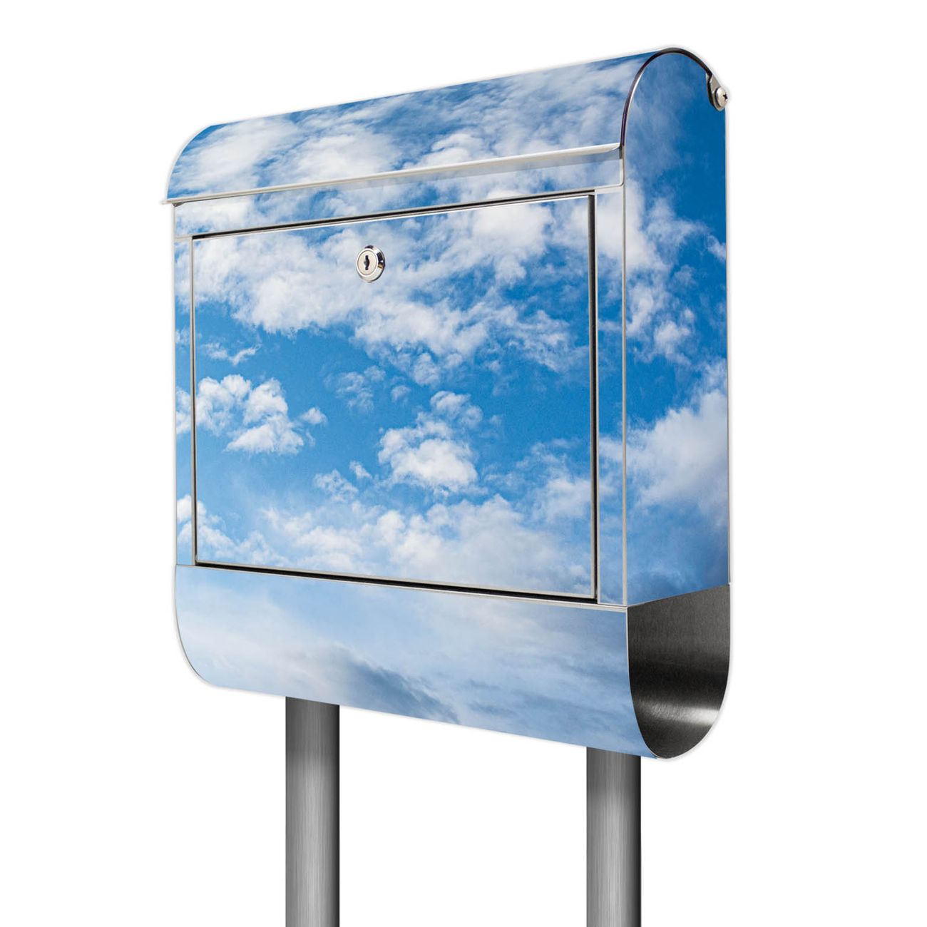 Der Motivstandbriefkasten hat ein sehr ansprechendes und ausgefallenes Design, damit entlocken Sie Ihren Nachbarn und dem Postboten ein Lächeln. Heben Sie Sich ab von der tristen grauen Masse, ohne auf Funktionalität zu verzichten. Der Briefkasten besteht aus hochwertigem 18/0 Edelstahl und die Wetter- und UV-resistenten Folie mit Wolken 1 Motiv ist zusätzlich mit einem Schutzlaminat überzogen. Der Standbriefkasten wird mit Montagematerial und zwei Schlüsseln geliefert.