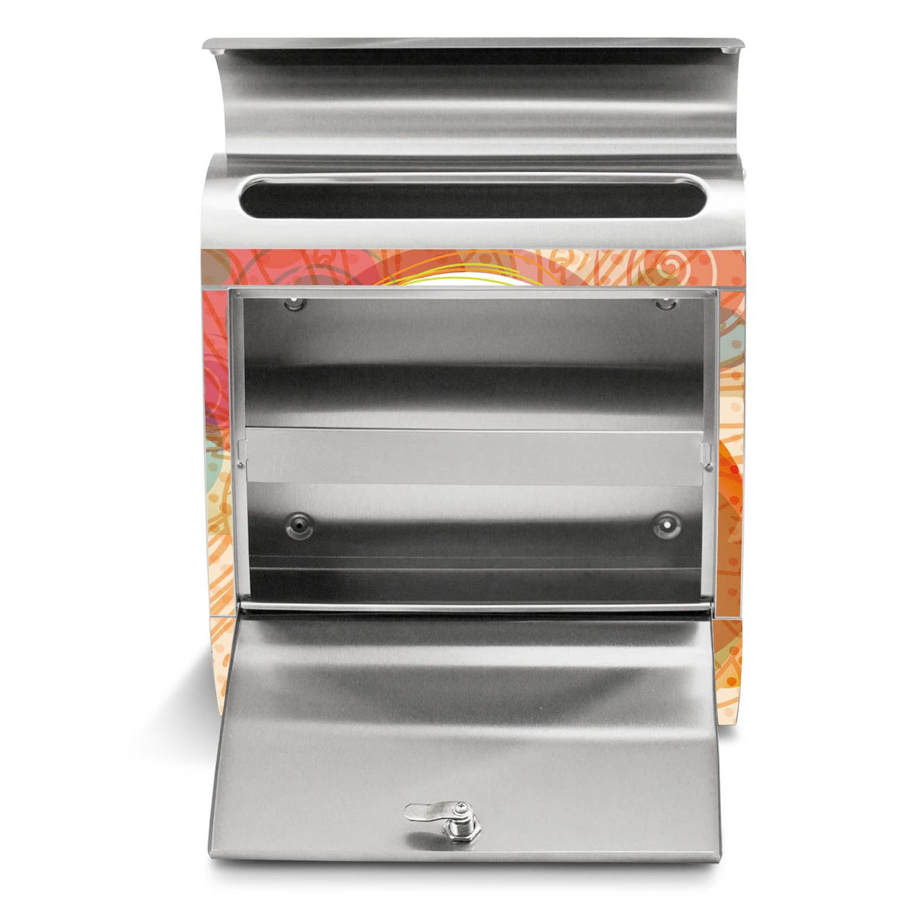Der banjado Edelstahl Standbriefkasten mit Motiv WT Im Sommer und eigenem Wunschtext bietet Ihnen mit seinem Fassungsvermögen genügend Platz auch für große A4 Sendungen. Das integrierte Zeitungsfach eignet sich hervorragend, um unkompliziert die Tageszeitung zu fassen.