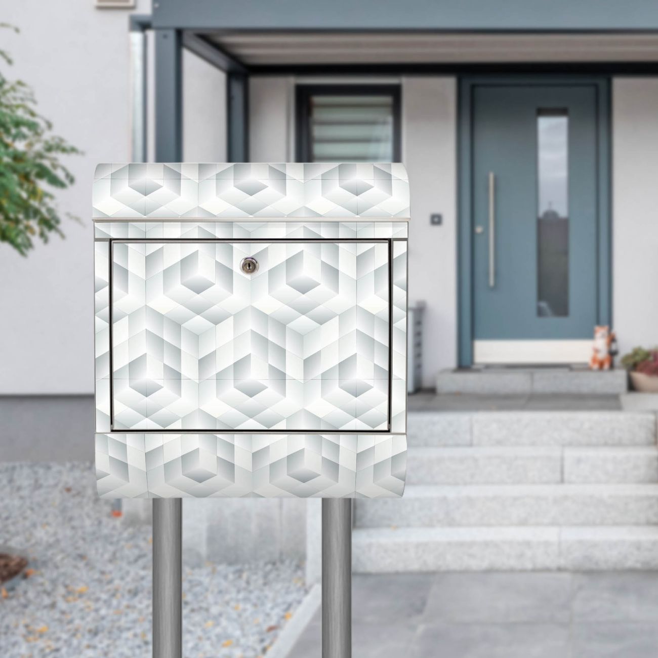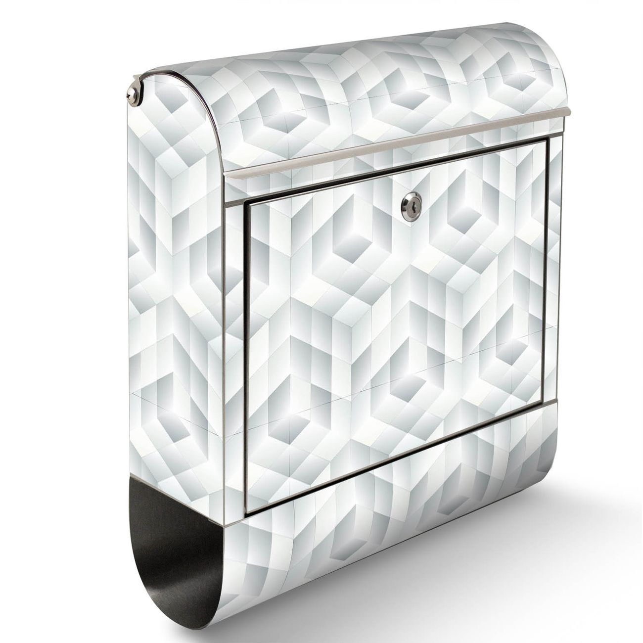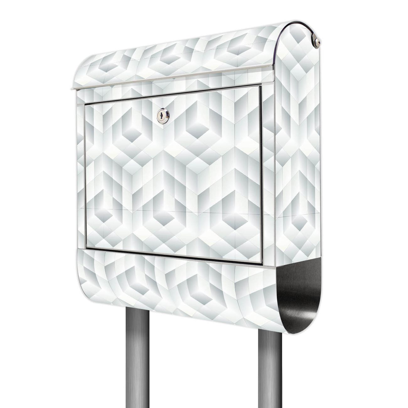 Der Motivstandbriefkasten hat ein sehr ansprechendes und ausgefallenes Design, damit entlocken Sie Ihren Nachbarn und dem Postboten ein Lächeln. Heben Sie Sich ab von der tristen grauen Masse, ohne auf Funktionalität zu verzichten. Der Briefkasten besteht aus hochwertigem 18/0 Edelstahl und die Wetter- und UV-resistenten Folie mit Würfel Grau Motiv ist zusätzlich mit einem Schutzlaminat überzogen. Der Standbriefkasten wird mit Montagematerial und zwei Schlüsseln geliefert.