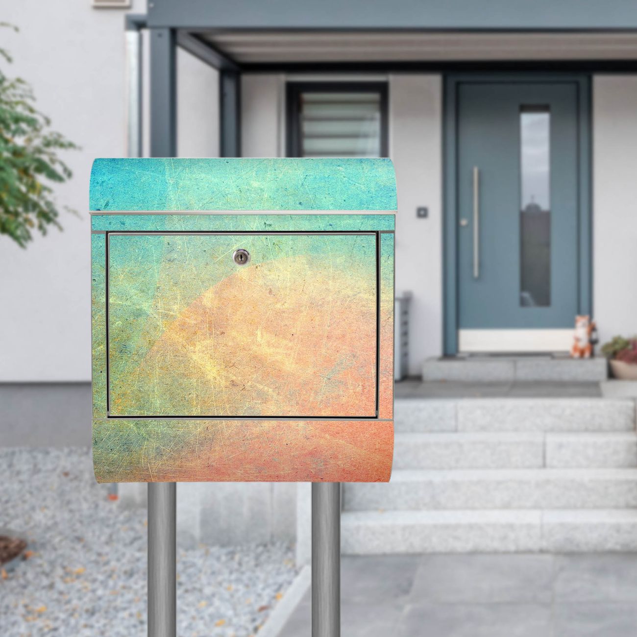 Der Motivstandbriefkasten hat ein sehr ansprechendes und ausgefallenes Design, damit entlocken Sie Ihren Nachbarn und dem Postboten ein Lächeln. Heben Sie Sich ab von der tristen grauen Masse, ohne auf Funktionalität zu verzichten. Der Briefkasten besteht aus hochwertigem 18/0 Edelstahl und die Wetter- und UV-resistenten Folie mit Zerkratzt 2 Motiv ist zusätzlich mit einem Schutzlaminat überzogen. Der Standbriefkasten wird mit Montagematerial und zwei Schlüsseln geliefert.