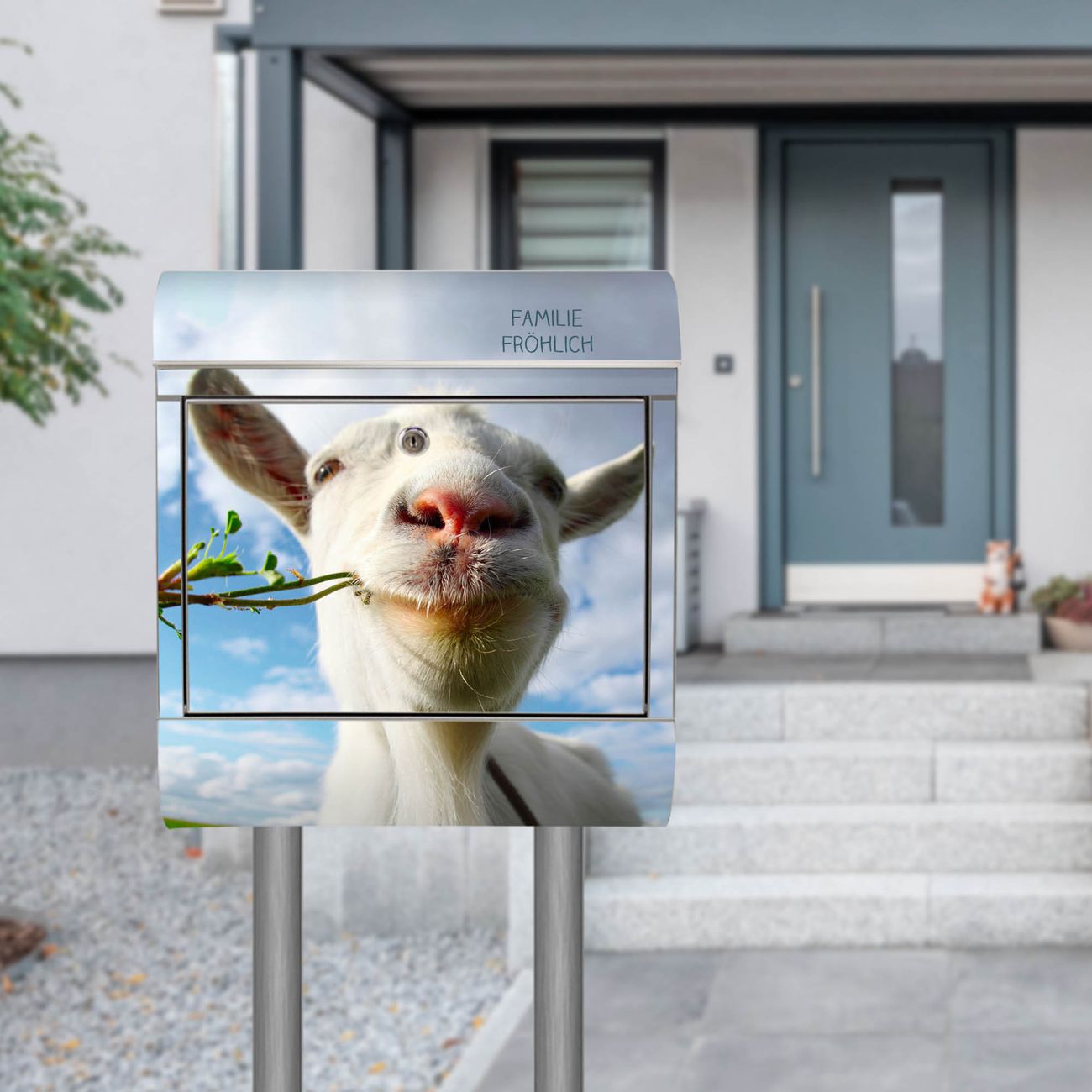 Standbriefkasten Edelstahl Ziege 2
