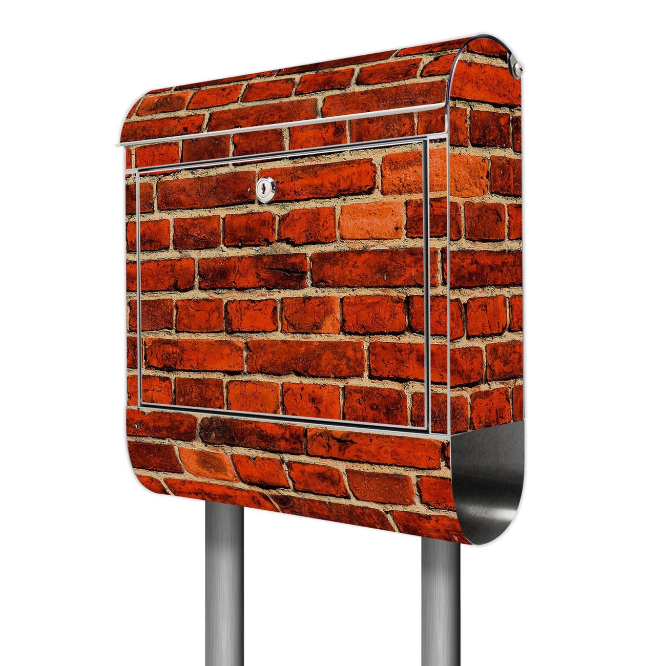 Der Motivstandbriefkasten hat ein sehr ansprechendes und ausgefallenes Design, damit entlocken Sie Ihren Nachbarn und dem Postboten ein Lächeln. Heben Sie Sich ab von der tristen grauen Masse, ohne auf Funktionalität zu verzichten. Der Briefkasten besteht aus hochwertigem 18/0 Edelstahl und die Wetter- und UV-resistenten Folie mit Ziegelwand Motiv ist zusätzlich mit einem Schutzlaminat überzogen. Der Standbriefkasten wird mit Montagematerial und zwei Schlüsseln geliefert.