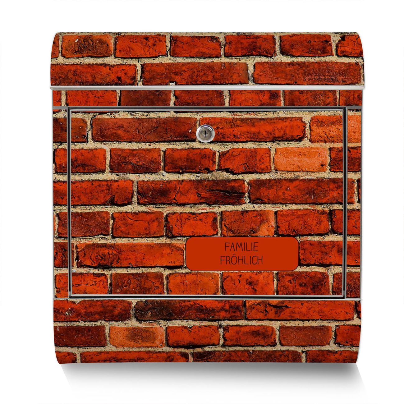 Der banjado Edelstahl Standbriefkasten mit Motiv Ziegelwand und eigenem Wunschtext bietet Ihnen mit seinem Fassungsvermögen genügend Platz auch für große A4 Sendungen. Das integrierte Zeitungsfach eignet sich hervorragend, um unkompliziert die Tageszeitung zu fassen.