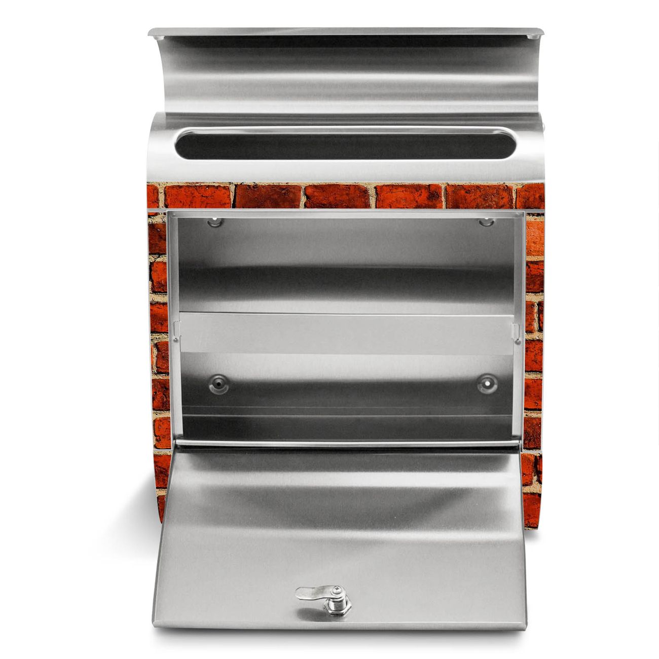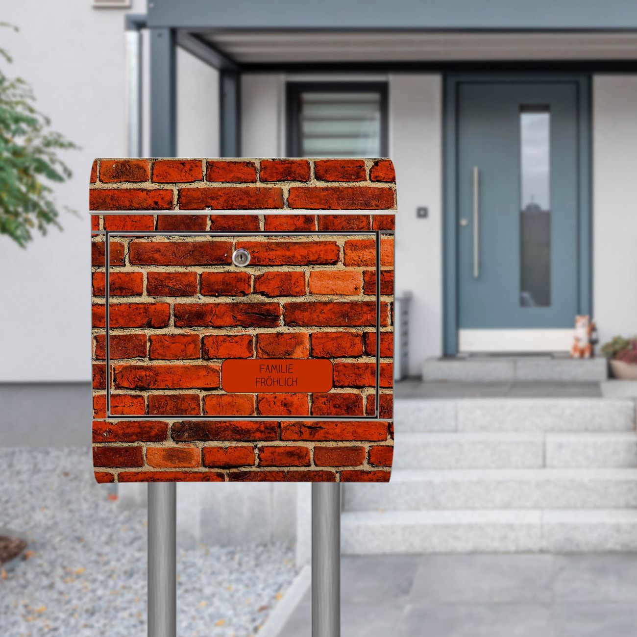 Der Motivstandbriefkasten hat ein sehr ansprechendes und ausgefallenes Design, damit entlocken Sie Ihren Nachbarn und dem Postboten ein Lächeln. Heben Sie Sich ab von der tristen grauen Masse, ohne auf Funktionalität zu verzichten. Der Briefkasten besteht aus hochwertigem 18/0 Edelstahl und die Wetter- und UV-resistenten Folie mit Ziegelwand Motiv ist zusätzlich mit einem Schutzlaminat überzogen. Der Standbriefkasten wird mit Montagematerial und zwei Schlüsseln geliefert.