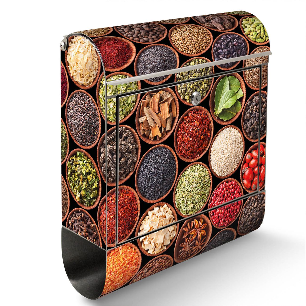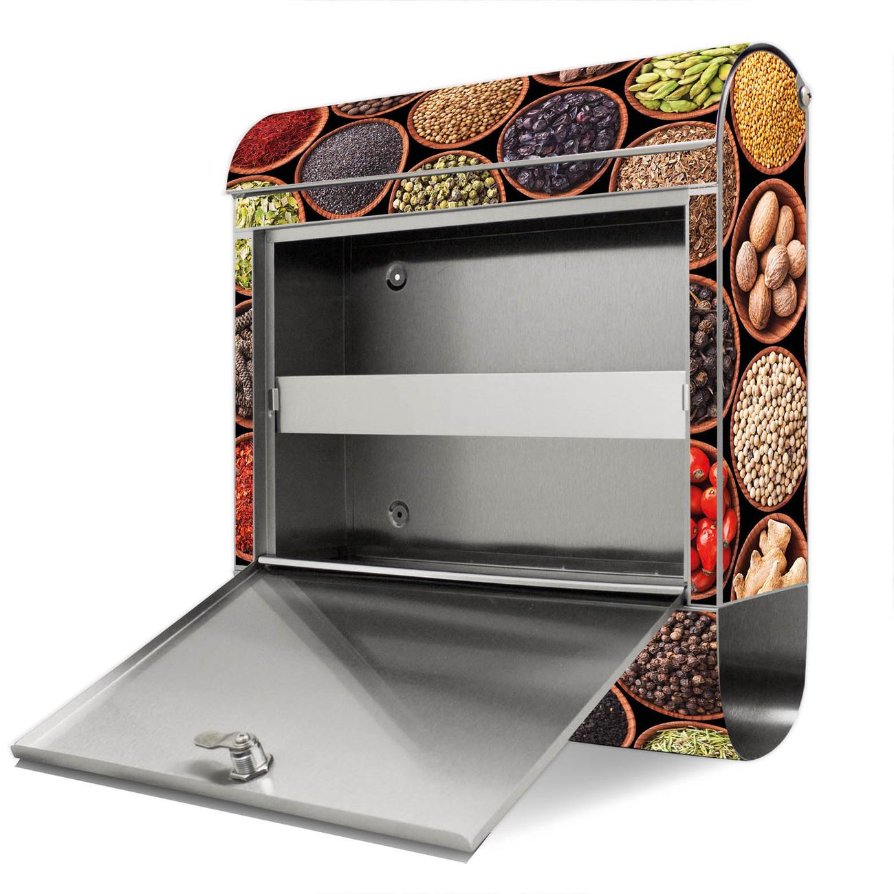 Der banjado Edelstahl Standbriefkasten mit Motiv Zutaten bietet Ihnen mit seinem Fassungsvermögen genügend Platz auch für große A4 Sendungen. Das integrierte Zeitungsfach eignet sich hervorragend, um unkompliziert die Tageszeitung zu fassen.