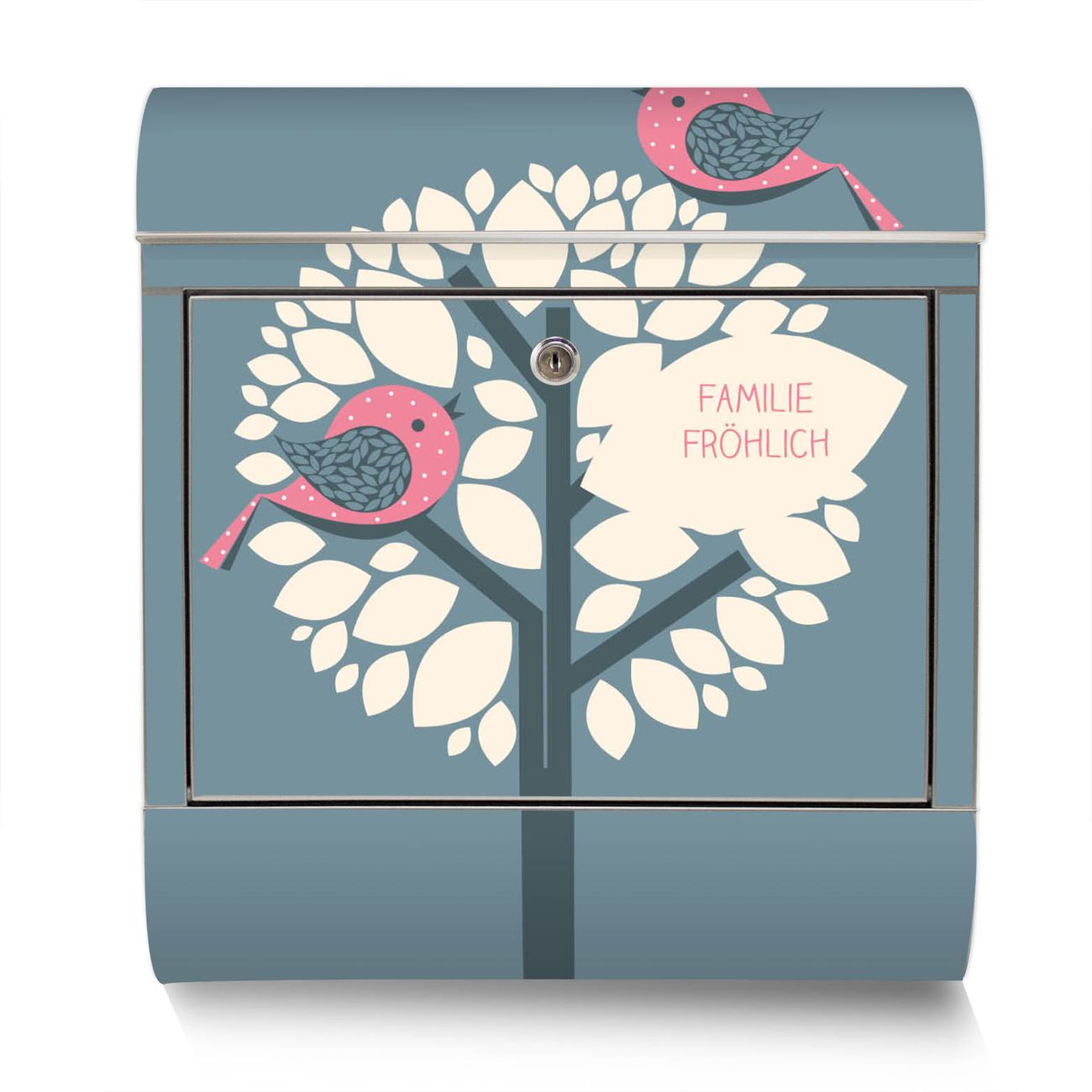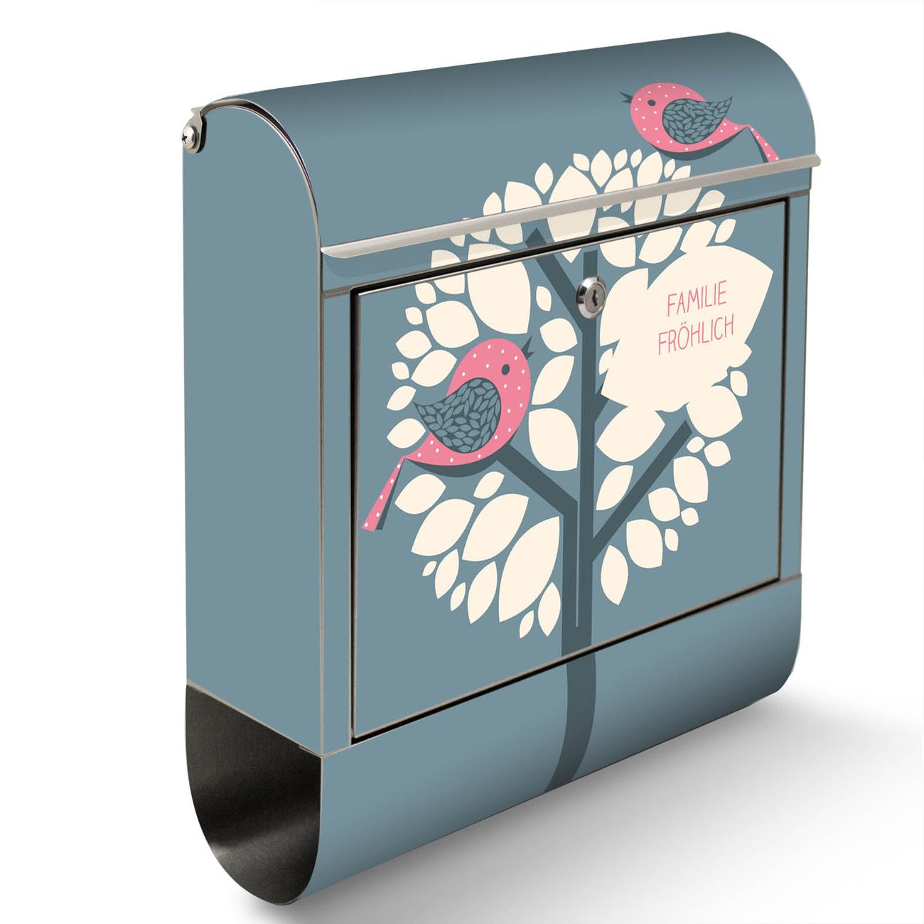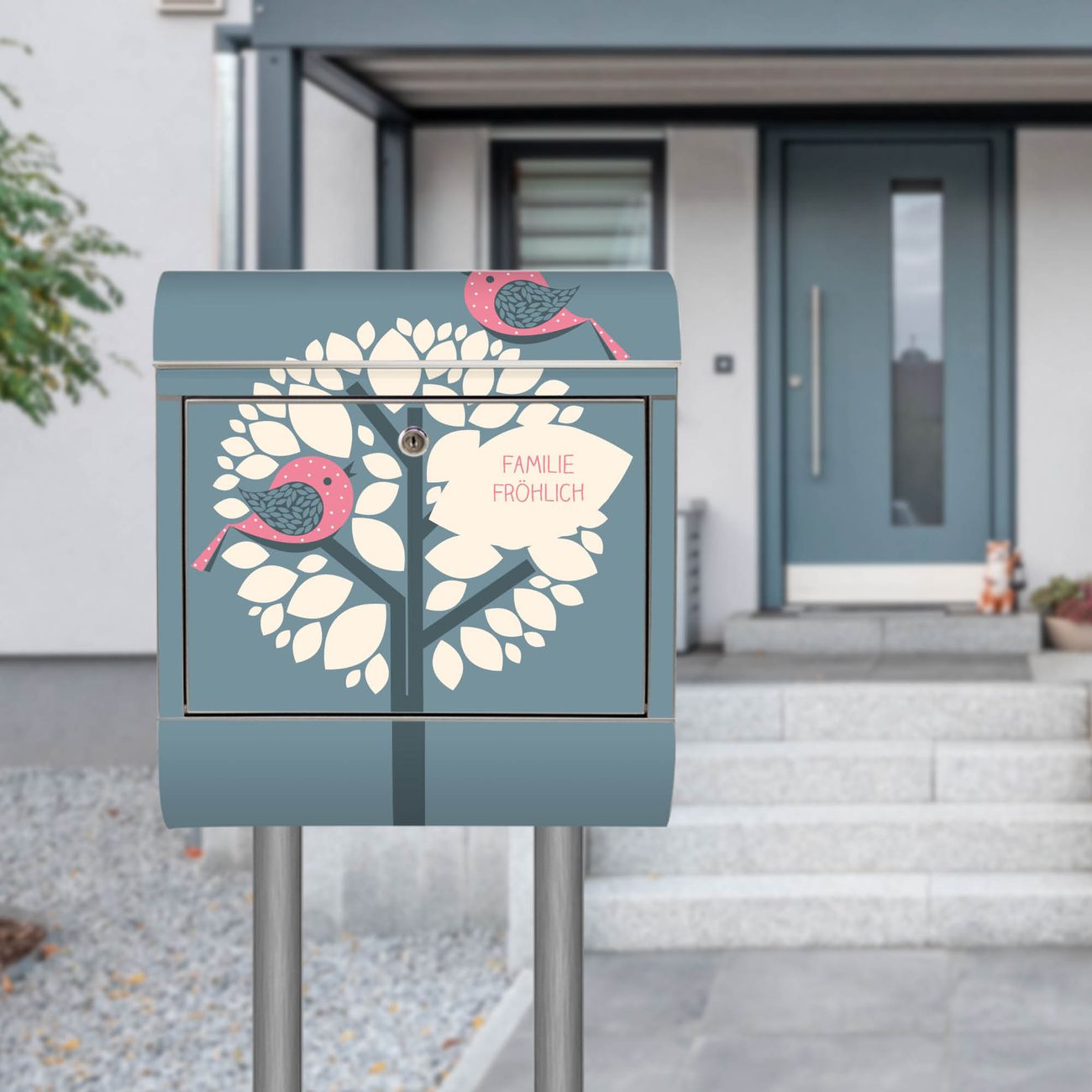 Standbriefkasten Edelstahl Zwei Rosa Vögel