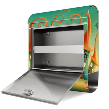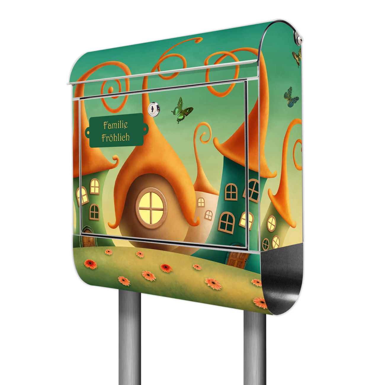 Der Motivstandbriefkasten hat ein sehr ansprechendes und ausgefallenes Design, damit entlocken Sie Ihren Nachbarn und dem Postboten ein Lächeln. Heben Sie Sich ab von der tristen grauen Masse, ohne auf Funktionalität zu verzichten. Der Briefkasten besteht aus hochwertigem 18/0 Edelstahl und die Wetter- und UV-resistenten Folie mit Zwergenhausen Motiv ist zusätzlich mit einem Schutzlaminat überzogen. Der Standbriefkasten wird mit Montagematerial und zwei Schlüsseln geliefert.