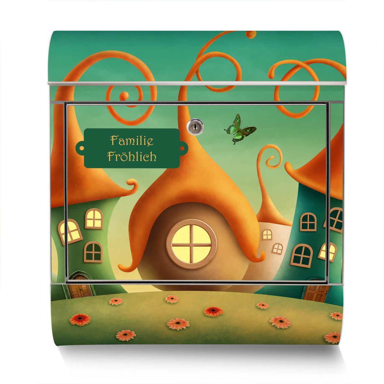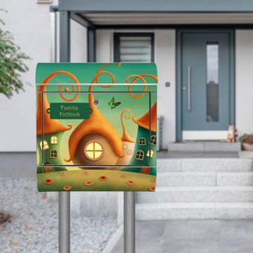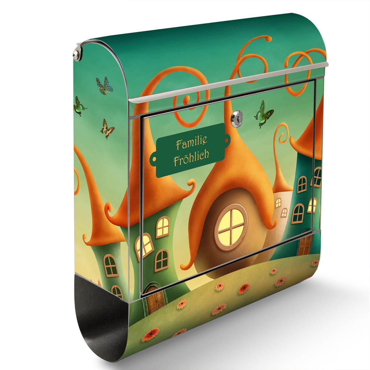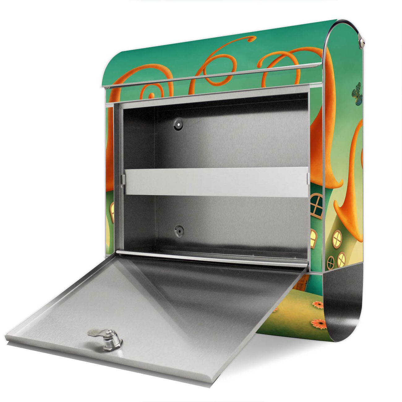 Der banjado Edelstahl Standbriefkasten mit Motiv Zwergenhausen und eigenem Wunschtext bietet Ihnen mit seinem Fassungsvermögen genügend Platz auch für große A4 Sendungen. Das integrierte Zeitungsfach eignet sich hervorragend, um unkompliziert die Tageszeitung zu fassen.