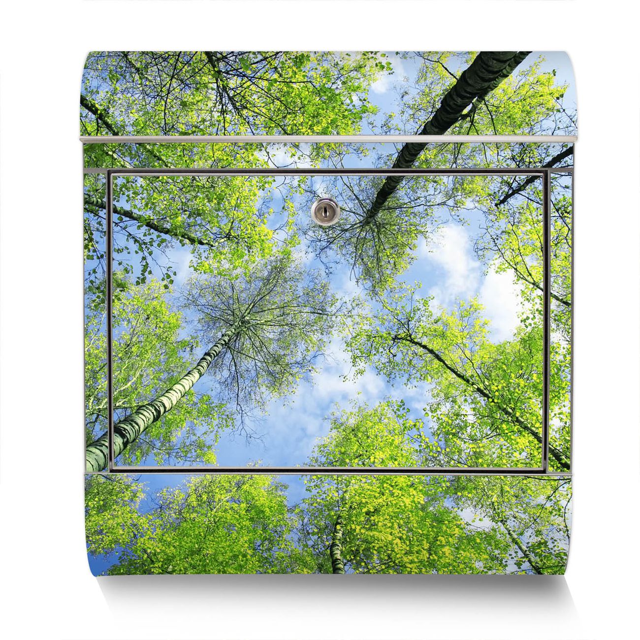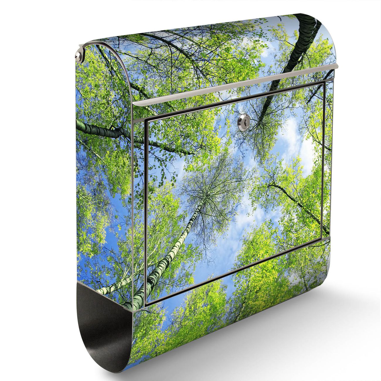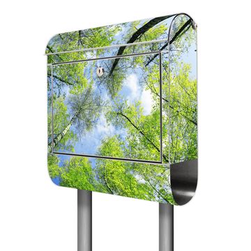 Der Motivstandbriefkasten hat ein sehr ansprechendes und ausgefallenes Design, damit entlocken Sie Ihren Nachbarn und dem Postboten ein Lächeln. Heben Sie Sich ab von der tristen grauen Masse, ohne auf Funktionalität zu verzichten. Der Briefkasten besteht aus hochwertigem 18/0 Edelstahl und die Wetter- und UV-resistenten Folie mit Zwischen Bäumen 3 Motiv ist zusätzlich mit einem Schutzlaminat überzogen. Der Standbriefkasten wird mit Montagematerial und zwei Schlüsseln geliefert.