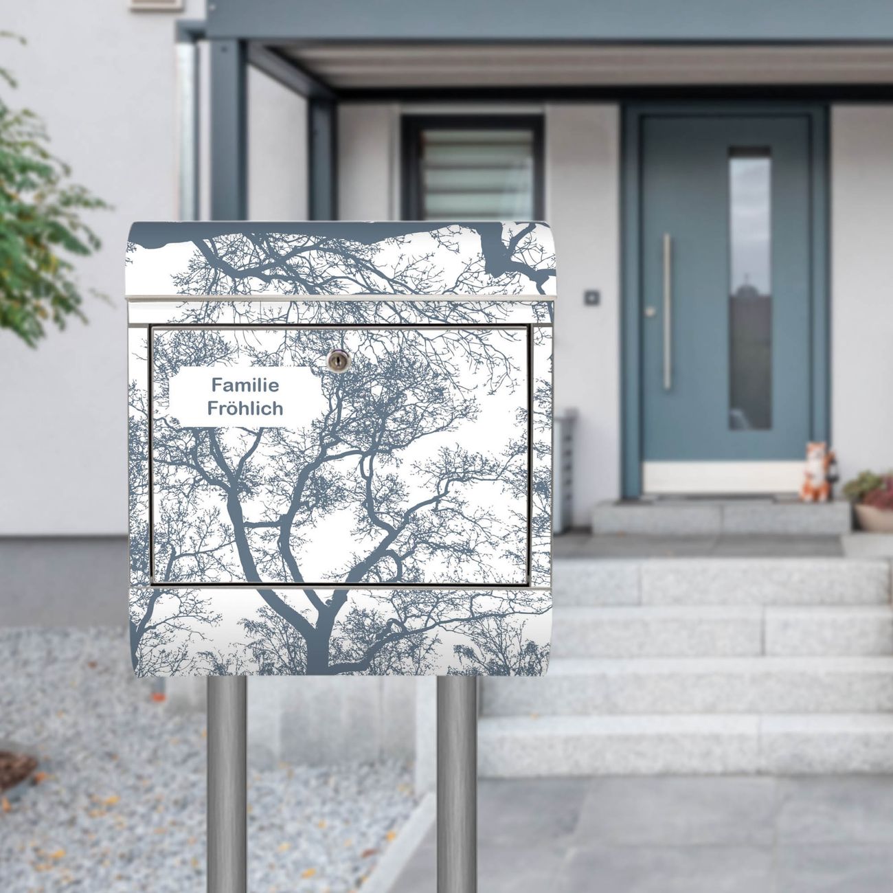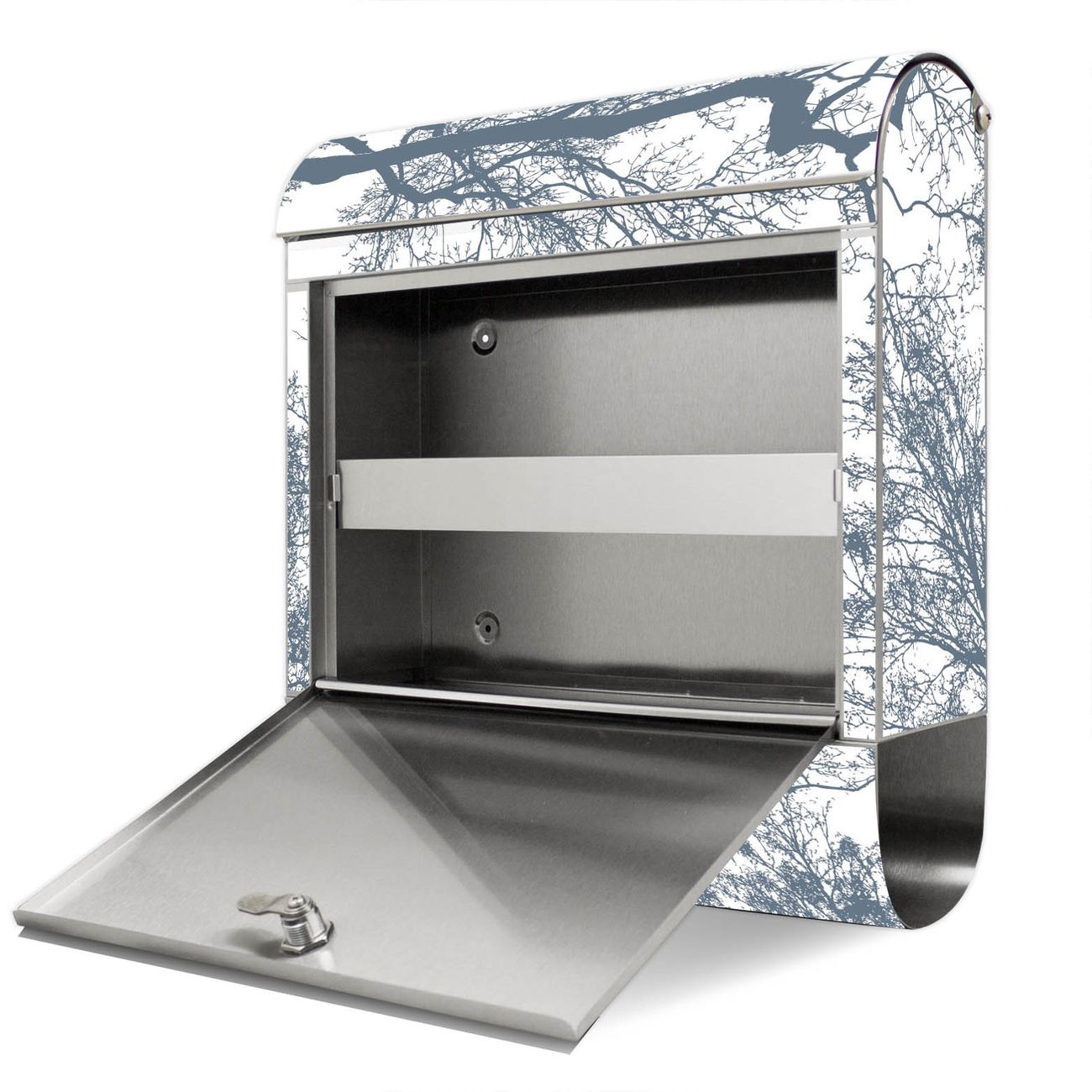 Der Motivstandbriefkasten hat ein sehr ansprechendes und ausgefallenes Design, damit entlocken Sie Ihren Nachbarn und dem Postboten ein Lächeln. Heben Sie Sich ab von der tristen grauen Masse, ohne auf Funktionalität zu verzichten. Der Briefkasten besteht aus hochwertigem 18/0 Edelstahl und die Wetter- und UV-resistenten Folie mit Zwischen Bäumen 7 Motiv ist zusätzlich mit einem Schutzlaminat überzogen. Der Standbriefkasten wird mit Montagematerial und zwei Schlüsseln geliefert.