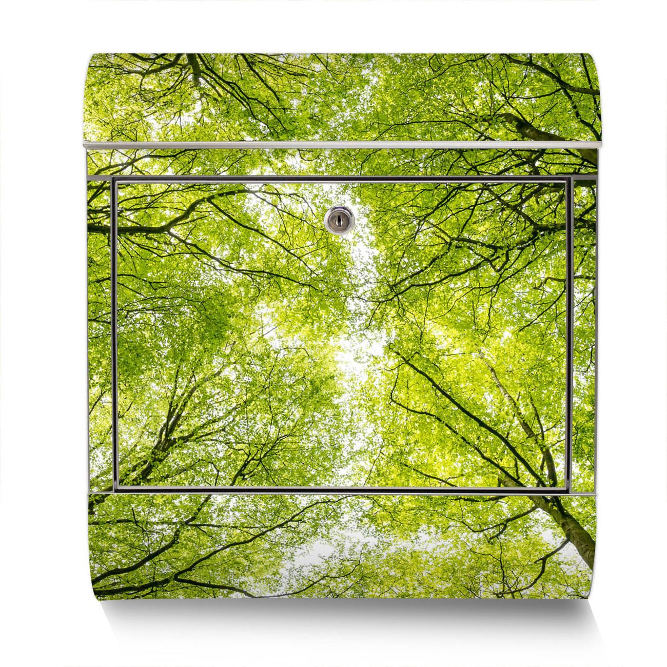 Der Motivstandbriefkasten hat ein sehr ansprechendes und ausgefallenes Design, damit entlocken Sie Ihren Nachbarn und dem Postboten ein Lächeln. Heben Sie Sich ab von der tristen grauen Masse, ohne auf Funktionalität zu verzichten. Der Briefkasten besteht aus hochwertigem 18/0 Edelstahl und die Wetter- und UV-resistenten Folie mit Zwischen Bäumen Motiv ist zusätzlich mit einem Schutzlaminat überzogen. Der Standbriefkasten wird mit Montagematerial und zwei Schlüsseln geliefert.