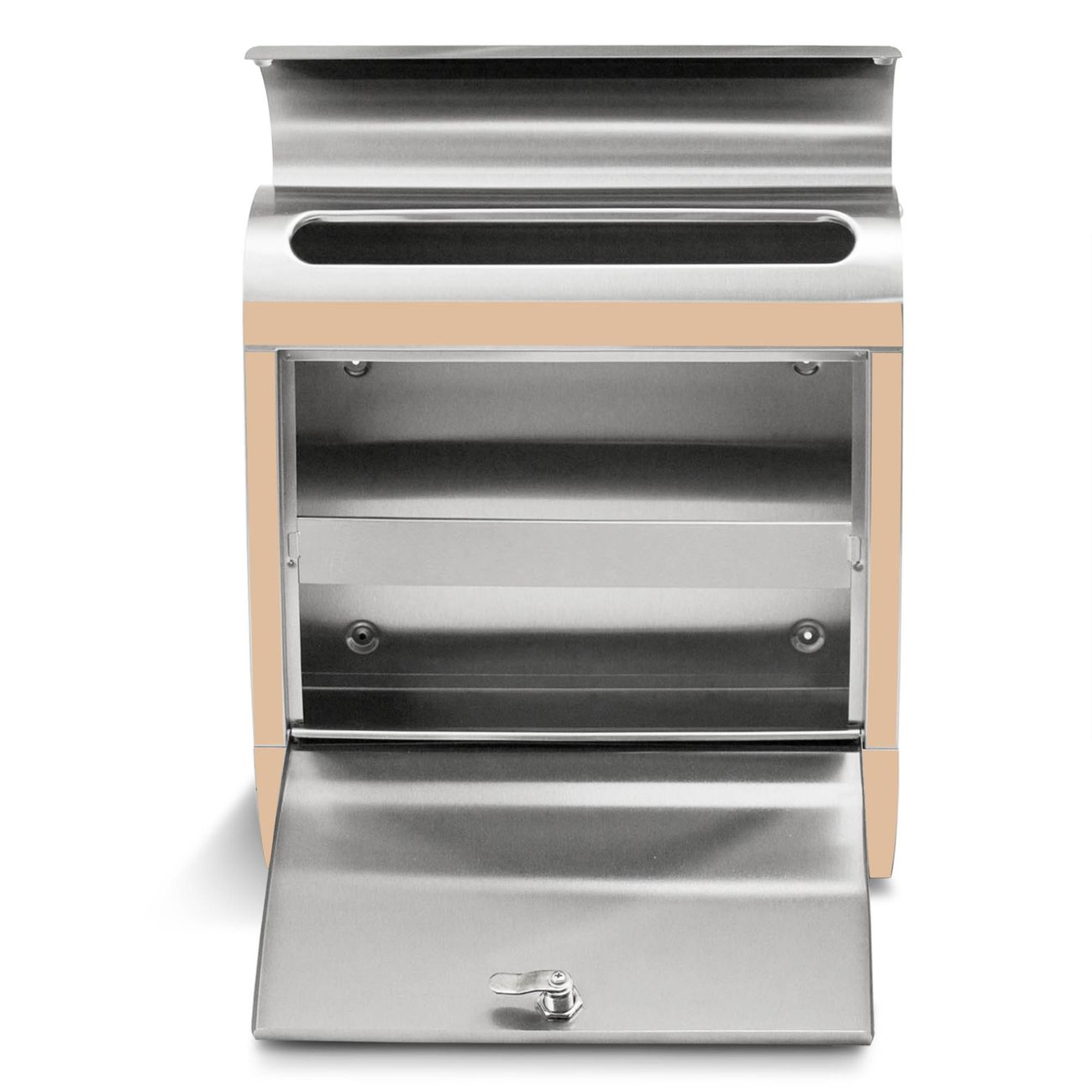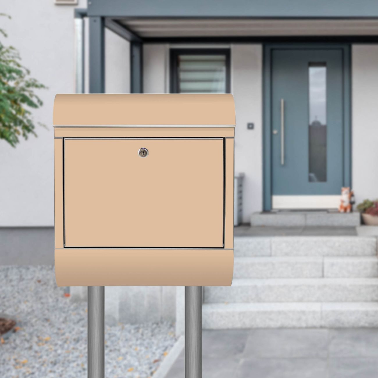 Der banjado Edelstahl Standbriefkasten mit Motiv Farbe Sandstein bietet Ihnen mit seinem Fassungsvermögen genügend Platz auch für große A4 Sendungen. Das integrierte Zeitungsfach eignet sich hervorragend, um unkompliziert die Tageszeitung zu fassen.