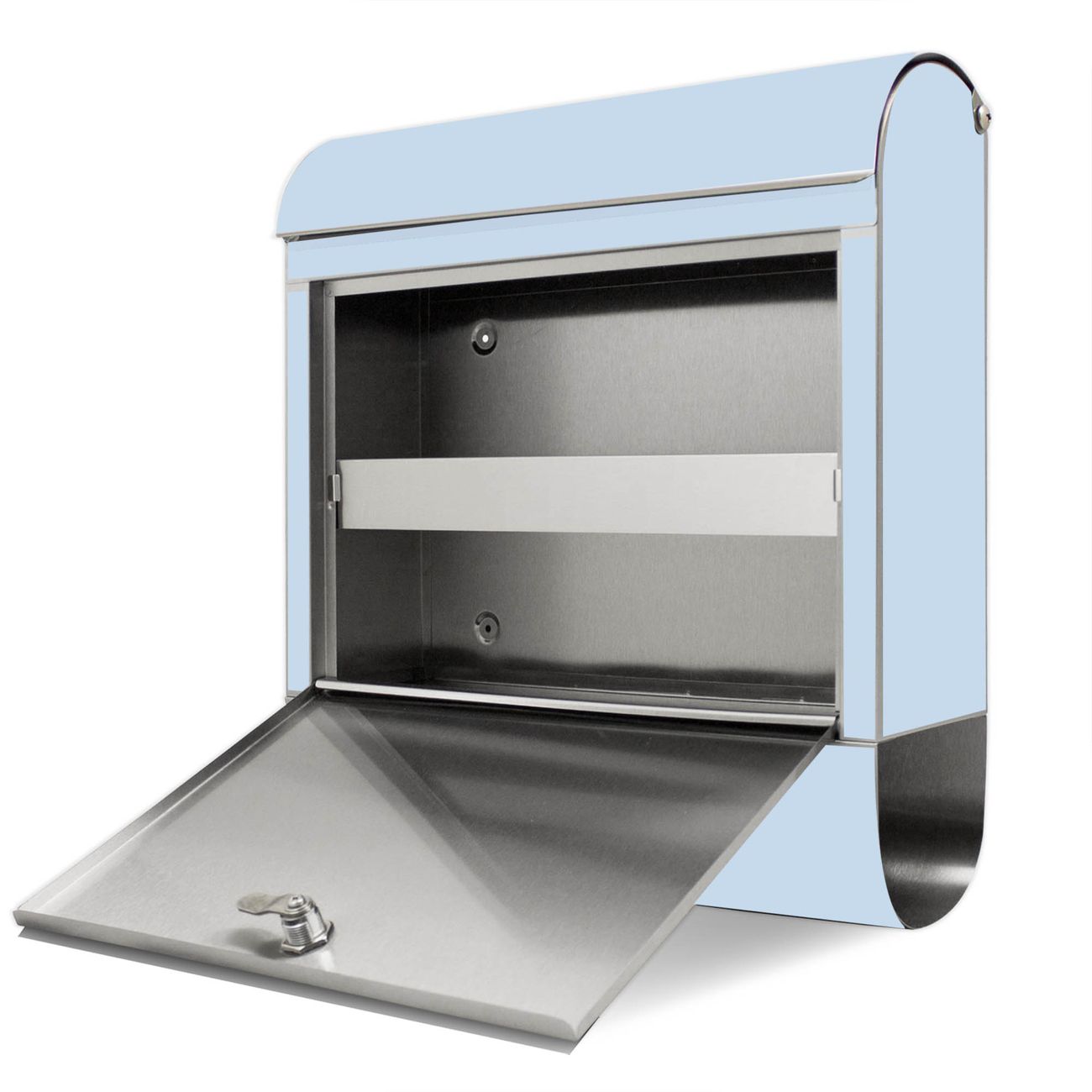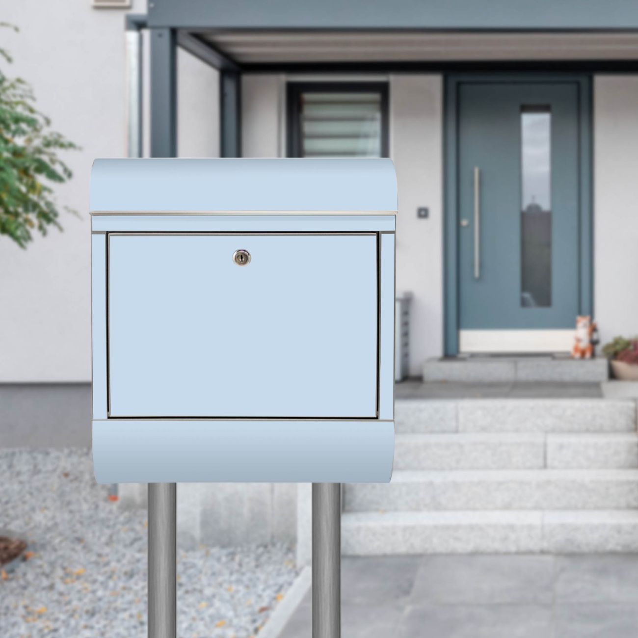 Der banjado Edelstahl Standbriefkasten mit Motiv Farbe Himmelblau bietet Ihnen mit seinem Fassungsvermögen genügend Platz auch für große A4 Sendungen. Das integrierte Zeitungsfach eignet sich hervorragend, um unkompliziert die Tageszeitung zu fassen.