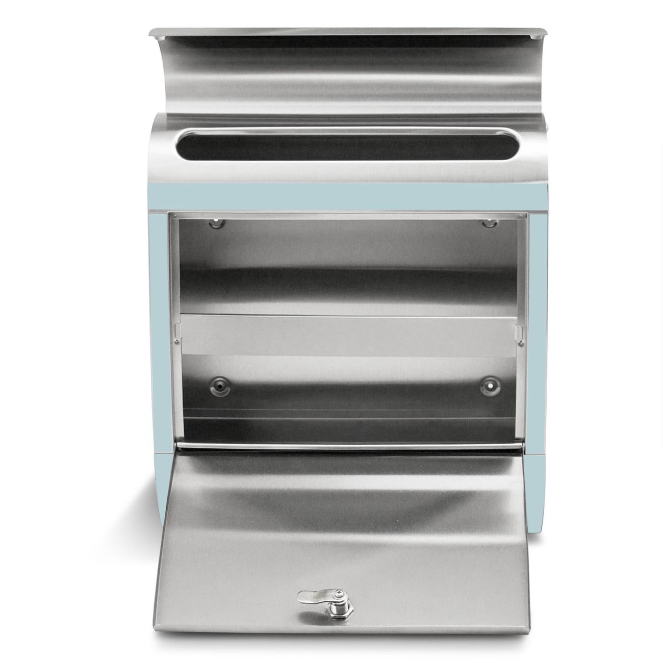Der banjado Edelstahl Standbriefkasten mit Motiv Farbe Meeresgrün bietet Ihnen mit seinem Fassungsvermögen genügend Platz auch für große A4 Sendungen. Das integrierte Zeitungsfach eignet sich hervorragend, um unkompliziert die Tageszeitung zu fassen.