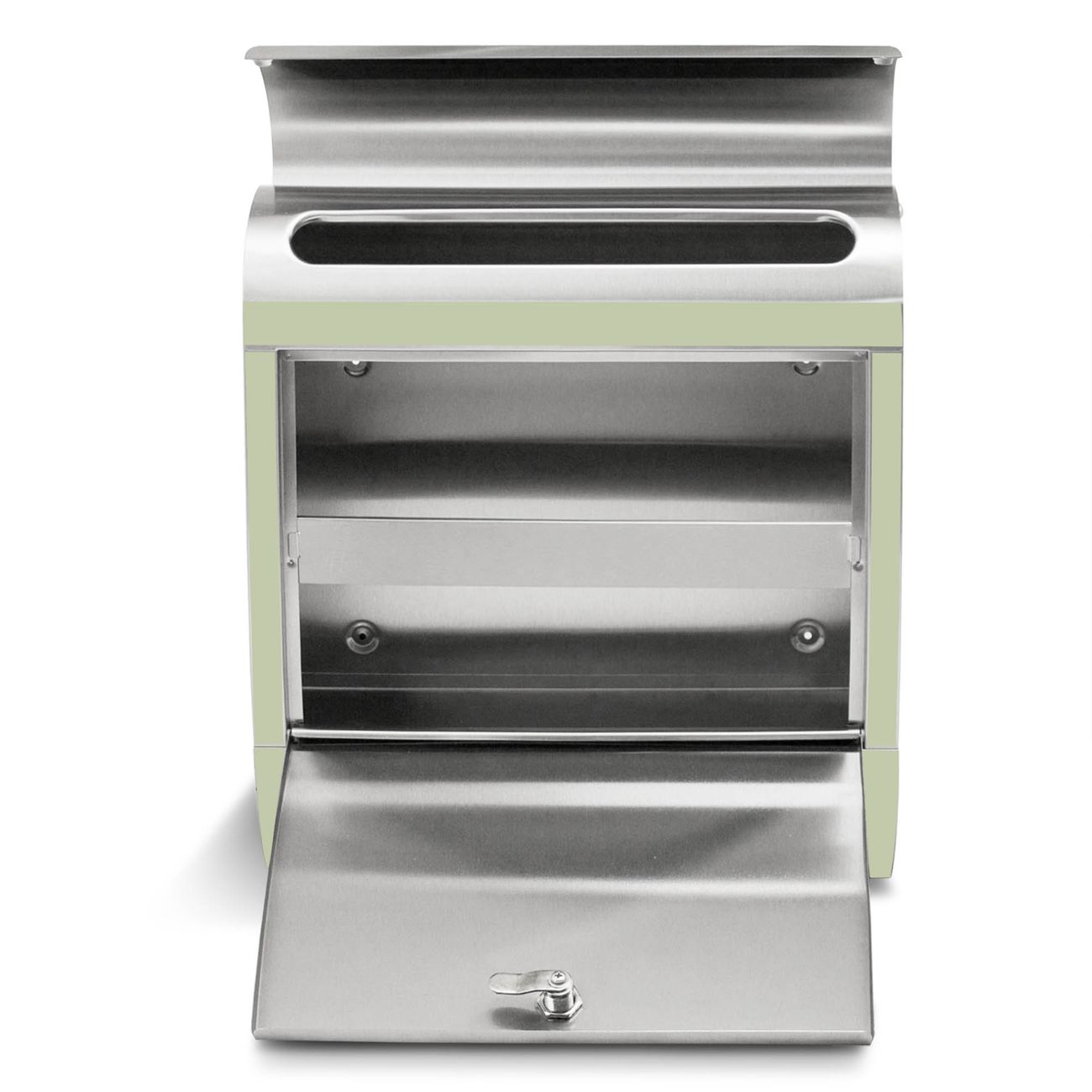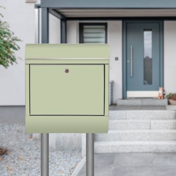 Der banjado Edelstahl Standbriefkasten mit Motiv Farbe Olive bietet Ihnen mit seinem Fassungsvermögen genügend Platz auch für große A4 Sendungen. Das integrierte Zeitungsfach eignet sich hervorragend, um unkompliziert die Tageszeitung zu fassen.