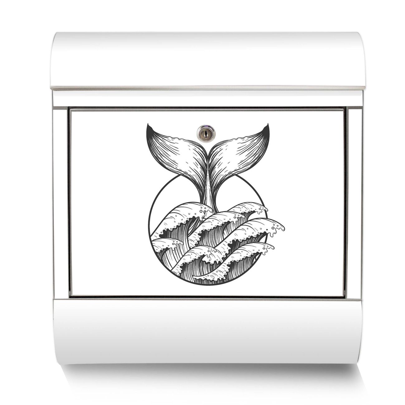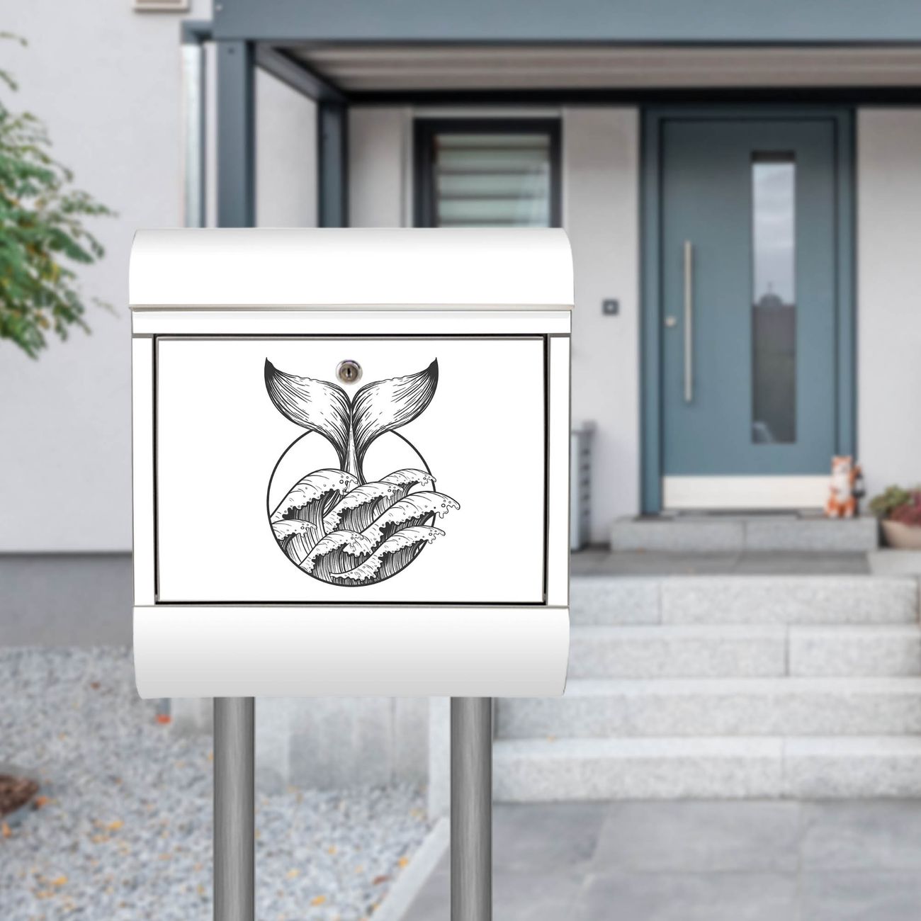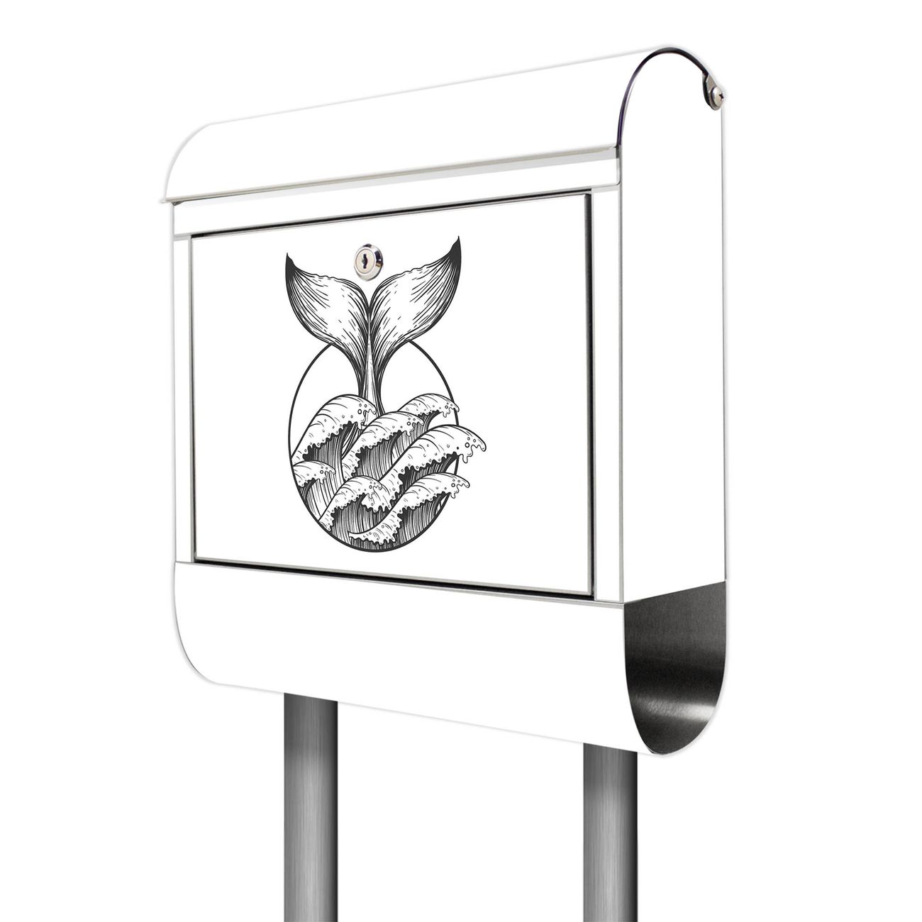 Der banjado Edelstahl Standbriefkasten mit Motiv Motiv Walflosse und Welle 2 bietet Ihnen mit seinem Fassungsvermögen genügend Platz auch für große A4 Sendungen. Das integrierte Zeitungsfach eignet sich hervorragend, um unkompliziert die Tageszeitung zu fassen.