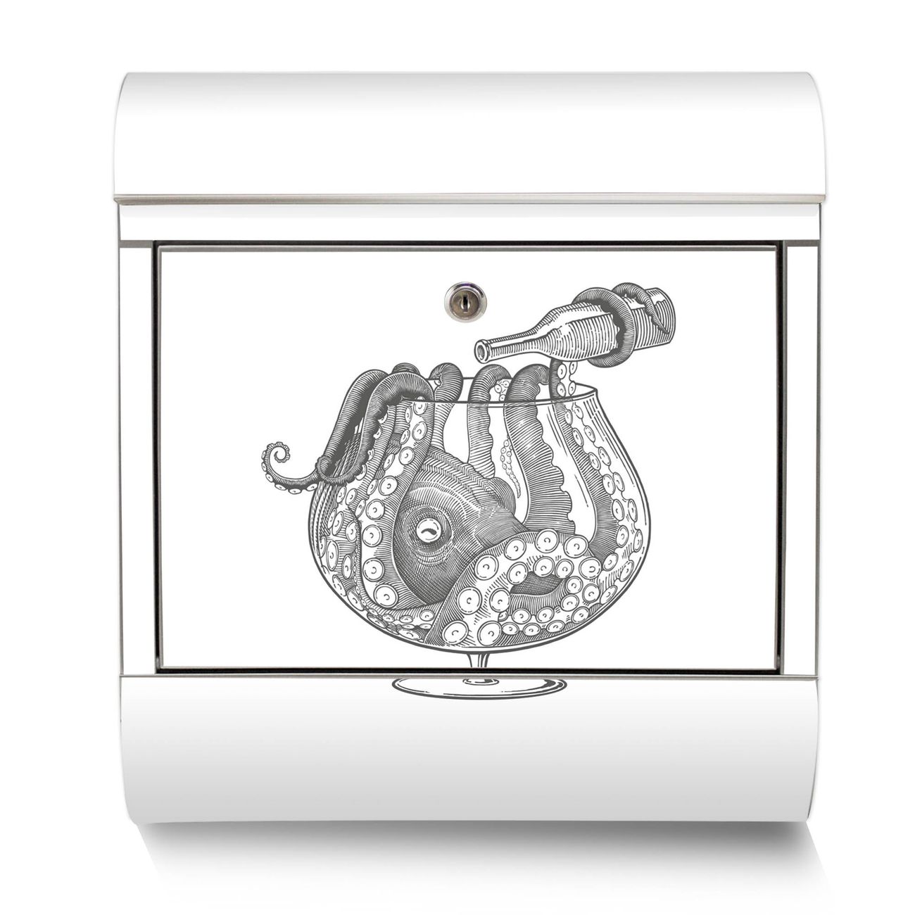 Der banjado Edelstahl Standbriefkasten mit Motiv Motiv Oktopus im Glas 2 bietet Ihnen mit seinem Fassungsvermögen genügend Platz auch für große A4 Sendungen. Das integrierte Zeitungsfach eignet sich hervorragend, um unkompliziert die Tageszeitung zu fassen.