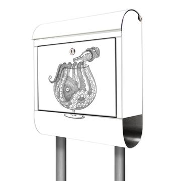 Der Motivstandbriefkasten hat ein sehr ansprechendes und ausgefallenes Design, damit entlocken Sie Ihren Nachbarn und dem Postboten ein Lächeln. Heben Sie Sich ab von der tristen grauen Masse, ohne auf Funktionalität zu verzichten. Der Briefkasten besteht aus hochwertigem 18/0 Edelstahl und die Wetter- und UV-resistenten Folie mit Motiv Oktopus im Glas 2 Motiv ist zusätzlich mit einem Schutzlaminat überzogen. Der Standbriefkasten wird mit Montagematerial und zwei Schlüsseln geliefert.