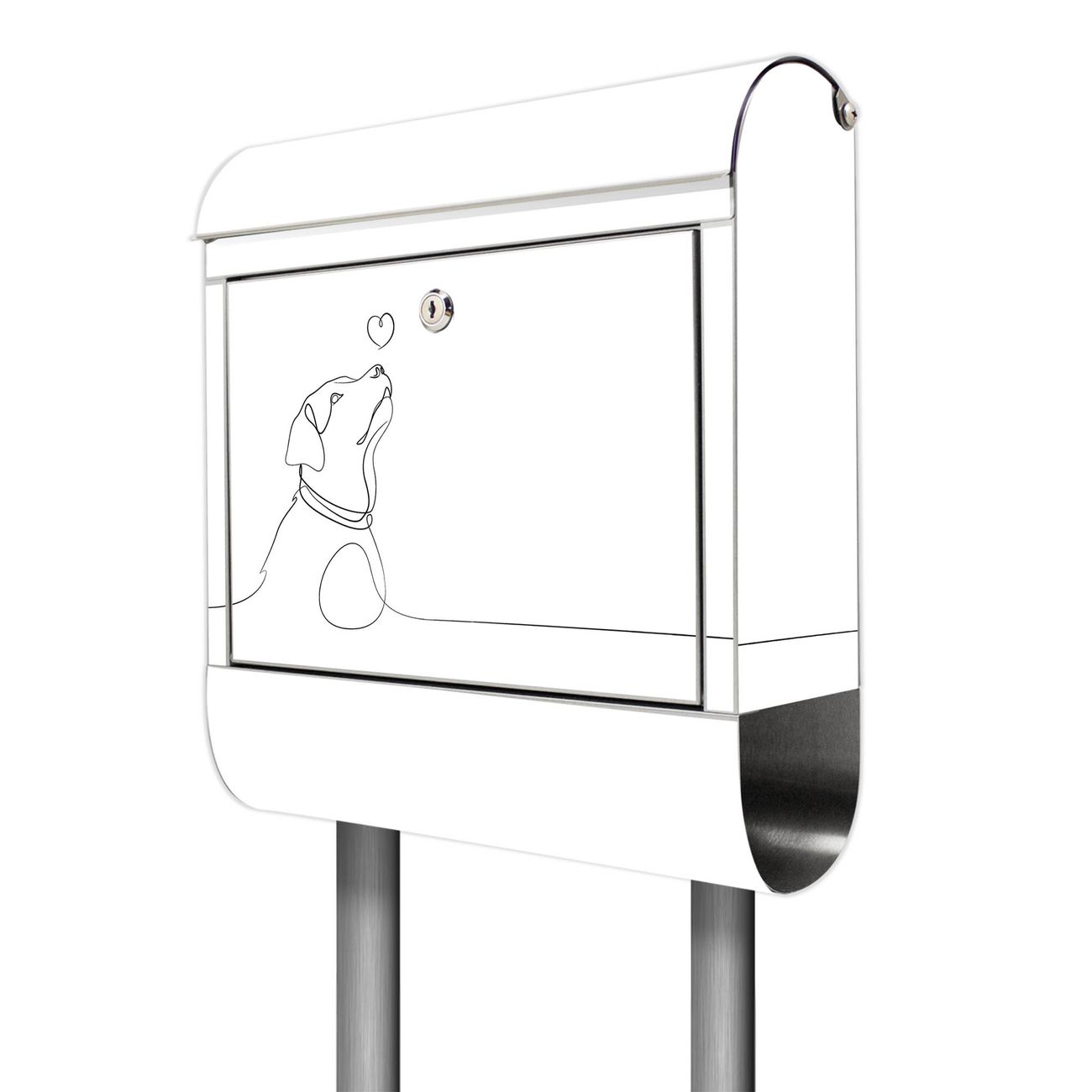 Der Motivstandbriefkasten hat ein sehr ansprechendes und ausgefallenes Design, damit entlocken Sie Ihren Nachbarn und dem Postboten ein Lächeln. Heben Sie Sich ab von der tristen grauen Masse, ohne auf Funktionalität zu verzichten. Der Briefkasten besteht aus hochwertigem 18/0 Edelstahl und die Wetter- und UV-resistenten Folie mit Motiv Hundeliebe 2 Motiv ist zusätzlich mit einem Schutzlaminat überzogen. Der Standbriefkasten wird mit Montagematerial und zwei Schlüsseln geliefert.