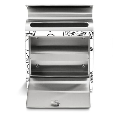 Der banjado Edelstahl Standbriefkasten mit Motiv Motiv Wassermonsterchen 2 bietet Ihnen mit seinem Fassungsvermögen genügend Platz auch für große A4 Sendungen. Das integrierte Zeitungsfach eignet sich hervorragend, um unkompliziert die Tageszeitung zu fassen.