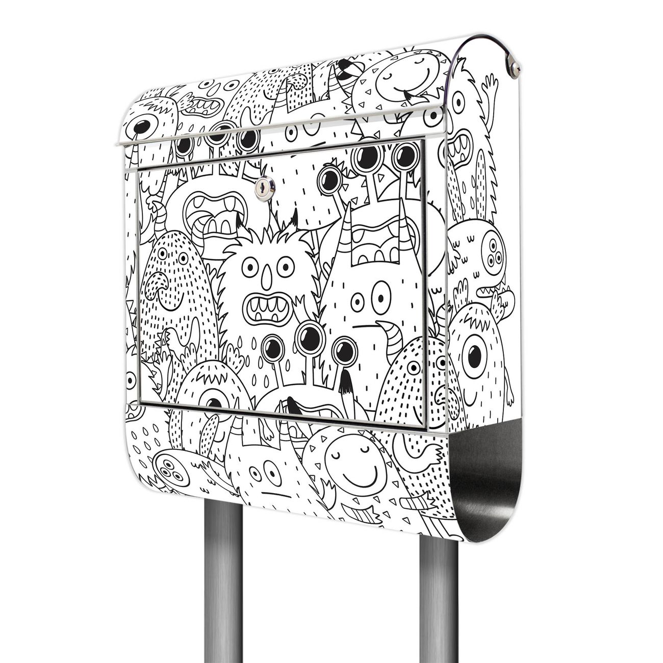 Der Motivstandbriefkasten hat ein sehr ansprechendes und ausgefallenes Design, damit entlocken Sie Ihren Nachbarn und dem Postboten ein Lächeln. Heben Sie Sich ab von der tristen grauen Masse, ohne auf Funktionalität zu verzichten. Der Briefkasten besteht aus hochwertigem 18/0 Edelstahl und die Wetter- und UV-resistenten Folie mit Motiv Fellmonsterchen 2 Motiv ist zusätzlich mit einem Schutzlaminat überzogen. Der Standbriefkasten wird mit Montagematerial und zwei Schlüsseln geliefert.