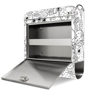 Der banjado Edelstahl Standbriefkasten mit Motiv Motiv Fellmonsterchen 2 bietet Ihnen mit seinem Fassungsvermögen genügend Platz auch für große A4 Sendungen. Das integrierte Zeitungsfach eignet sich hervorragend, um unkompliziert die Tageszeitung zu fassen.