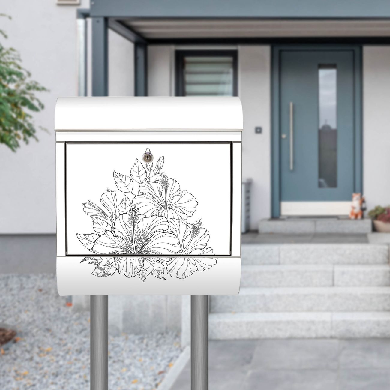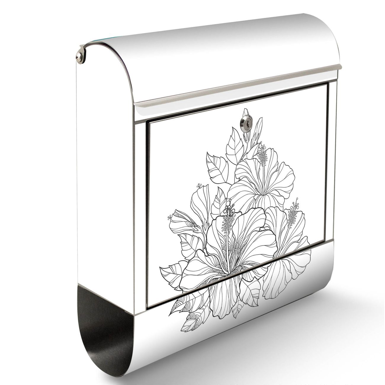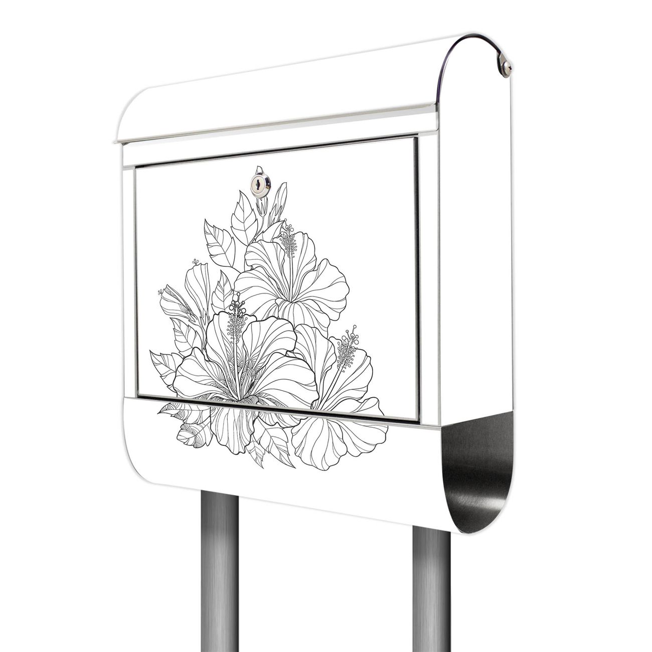 Der Motivstandbriefkasten hat ein sehr ansprechendes und ausgefallenes Design, damit entlocken Sie Ihren Nachbarn und dem Postboten ein Lächeln. Heben Sie Sich ab von der tristen grauen Masse, ohne auf Funktionalität zu verzichten. Der Briefkasten besteht aus hochwertigem 18/0 Edelstahl und die Wetter- und UV-resistenten Folie mit Motiv Hibiskus 2 Motiv ist zusätzlich mit einem Schutzlaminat überzogen. Der Standbriefkasten wird mit Montagematerial und zwei Schlüsseln geliefert.