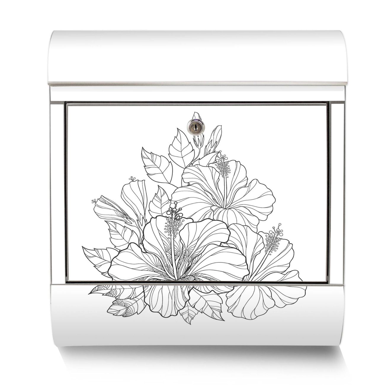 Der banjado Edelstahl Standbriefkasten mit Motiv Motiv Hibiskus 2 bietet Ihnen mit seinem Fassungsvermögen genügend Platz auch für große A4 Sendungen. Das integrierte Zeitungsfach eignet sich hervorragend, um unkompliziert die Tageszeitung zu fassen.