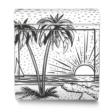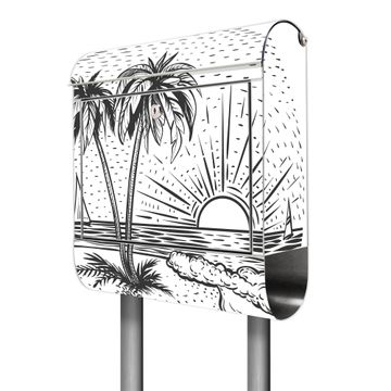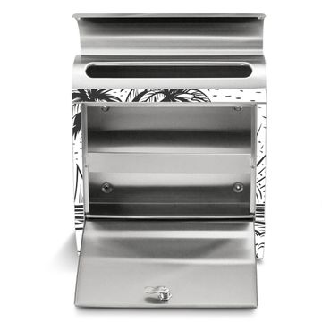 Der banjado Edelstahl Standbriefkasten mit Motiv Motiv Palmenstrand 2 bietet Ihnen mit seinem Fassungsvermögen genügend Platz auch für große A4 Sendungen. Das integrierte Zeitungsfach eignet sich hervorragend, um unkompliziert die Tageszeitung zu fassen.