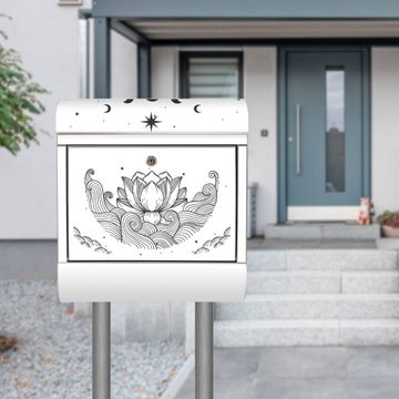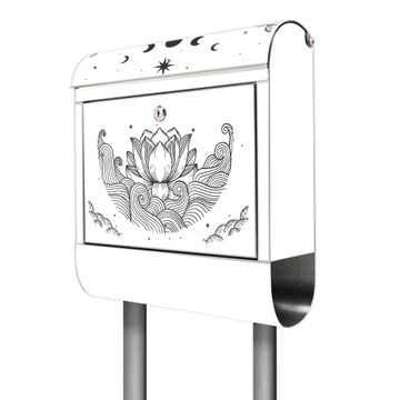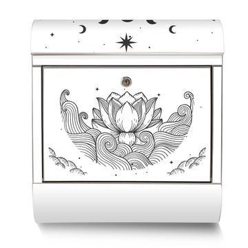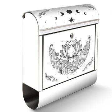 Der banjado Edelstahl Standbriefkasten mit Motiv Motiv Lotus und Mondphasen 2 bietet Ihnen mit seinem Fassungsvermögen genügend Platz auch für große A4 Sendungen. Das integrierte Zeitungsfach eignet sich hervorragend, um unkompliziert die Tageszeitung zu fassen.