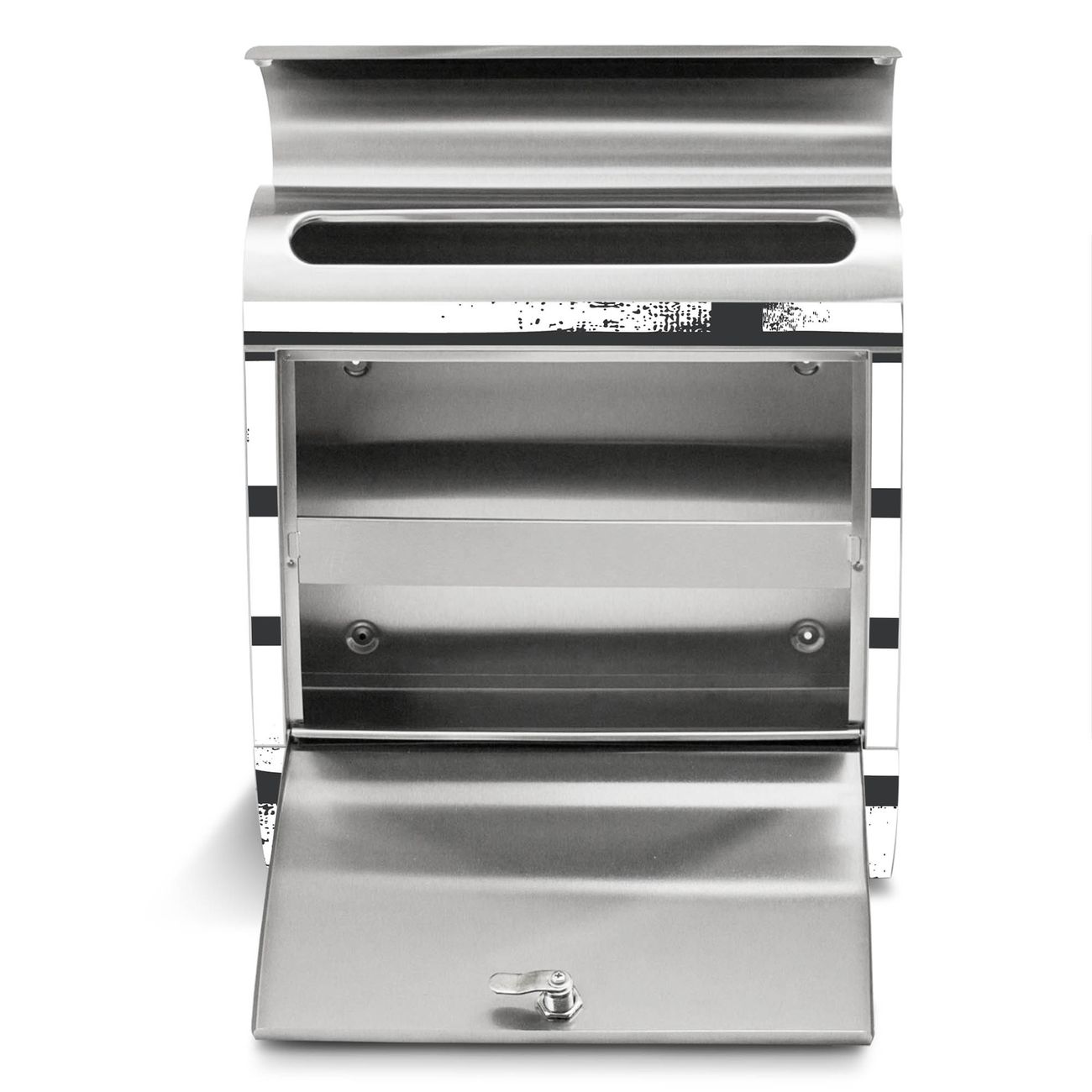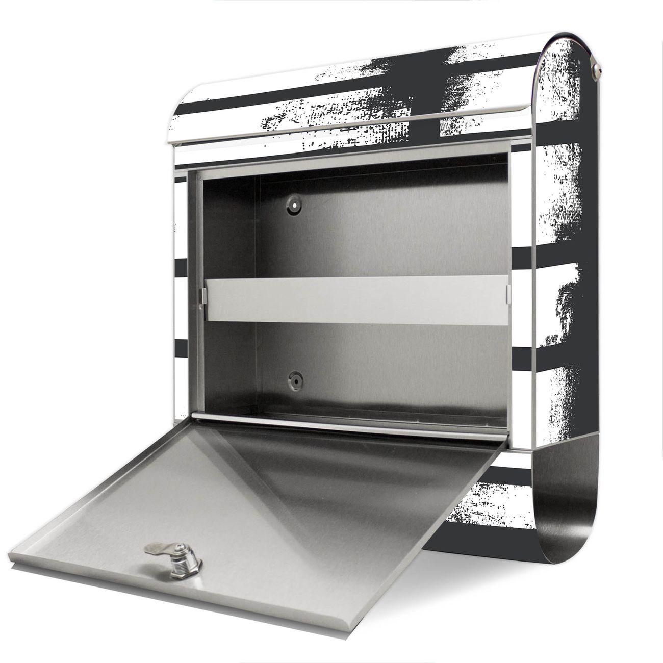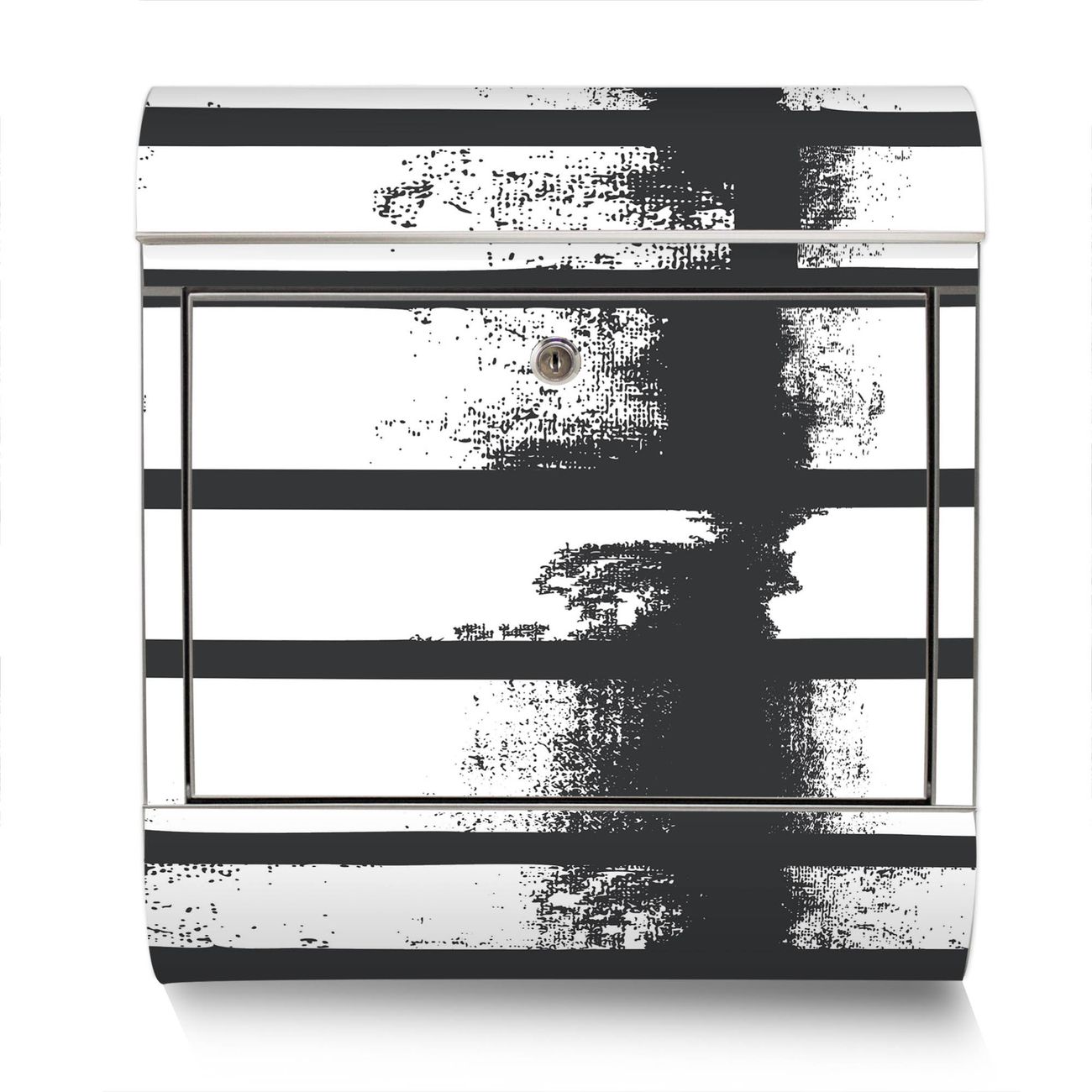 Der Motivstandbriefkasten hat ein sehr ansprechendes und ausgefallenes Design, damit entlocken Sie Ihren Nachbarn und dem Postboten ein Lächeln. Heben Sie Sich ab von der tristen grauen Masse, ohne auf Funktionalität zu verzichten. Der Briefkasten besteht aus hochwertigem 18/0 Edelstahl und die Wetter- und UV-resistenten Folie mit Motiv Grunge Streifen Motiv ist zusätzlich mit einem Schutzlaminat überzogen. Der Standbriefkasten wird mit Montagematerial und zwei Schlüsseln geliefert.