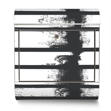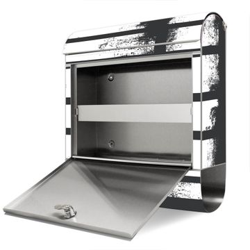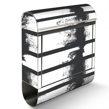 Der banjado Edelstahl Standbriefkasten mit Motiv Motiv Grunge Streifen bietet Ihnen mit seinem Fassungsvermögen genügend Platz auch für große A4 Sendungen. Das integrierte Zeitungsfach eignet sich hervorragend, um unkompliziert die Tageszeitung zu fassen.