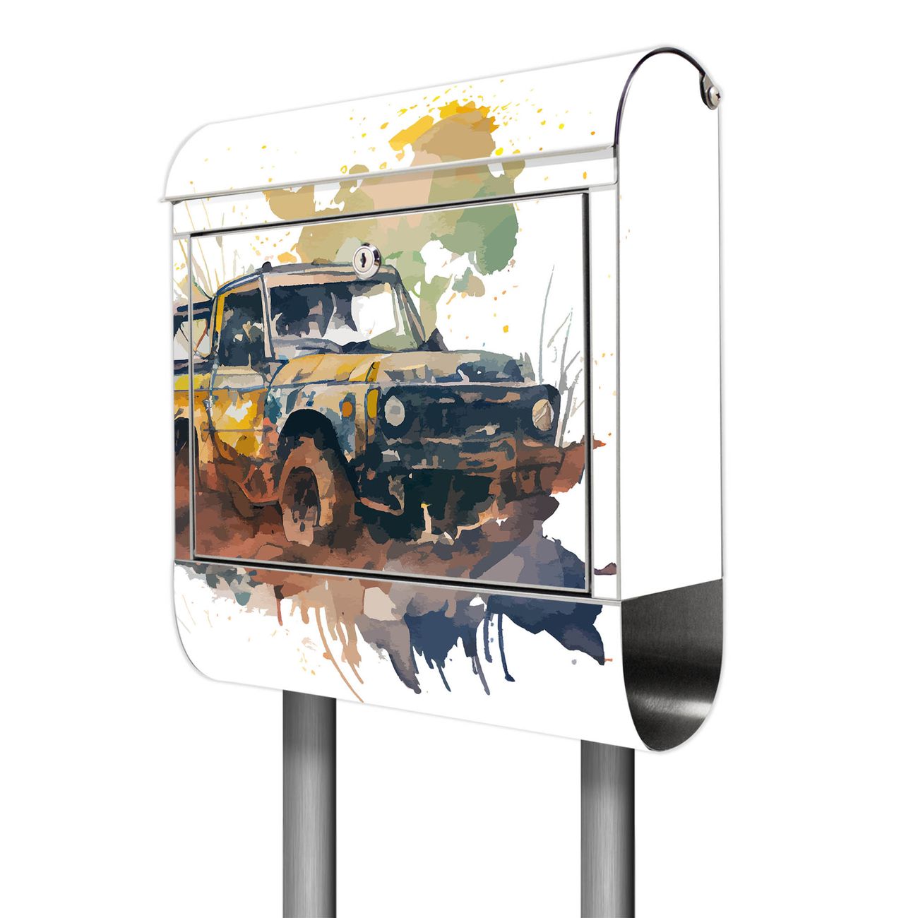 Der Motivstandbriefkasten hat ein sehr ansprechendes und ausgefallenes Design, damit entlocken Sie Ihren Nachbarn und dem Postboten ein Lächeln. Heben Sie Sich ab von der tristen grauen Masse, ohne auf Funktionalität zu verzichten. Der Briefkasten besteht aus hochwertigem 18/0 Edelstahl und die Wetter- und UV-resistenten Folie mit Motiv Offroad Abenteuer Motiv ist zusätzlich mit einem Schutzlaminat überzogen. Der Standbriefkasten wird mit Montagematerial und zwei Schlüsseln geliefert.