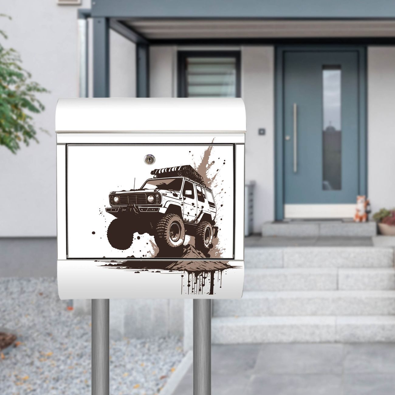 Der Motivstandbriefkasten hat ein sehr ansprechendes und ausgefallenes Design, damit entlocken Sie Ihren Nachbarn und dem Postboten ein Lächeln. Heben Sie Sich ab von der tristen grauen Masse, ohne auf Funktionalität zu verzichten. Der Briefkasten besteht aus hochwertigem 18/0 Edelstahl und die Wetter- und UV-resistenten Folie mit Motiv Offroad Abenteuer 3 Motiv ist zusätzlich mit einem Schutzlaminat überzogen. Der Standbriefkasten wird mit Montagematerial und zwei Schlüsseln geliefert.