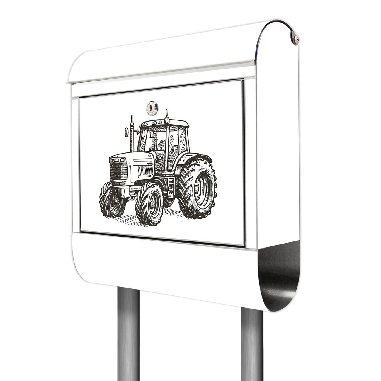 Der Motivstandbriefkasten hat ein sehr ansprechendes und ausgefallenes Design, damit entlocken Sie Ihren Nachbarn und dem Postboten ein Lächeln. Heben Sie Sich ab von der tristen grauen Masse, ohne auf Funktionalität zu verzichten. Der Briefkasten besteht aus hochwertigem 18/0 Edelstahl und die Wetter- und UV-resistenten Folie mit Motiv Historischer Traktor Motiv ist zusätzlich mit einem Schutzlaminat überzogen. Der Standbriefkasten wird mit Montagematerial und zwei Schlüsseln geliefert.