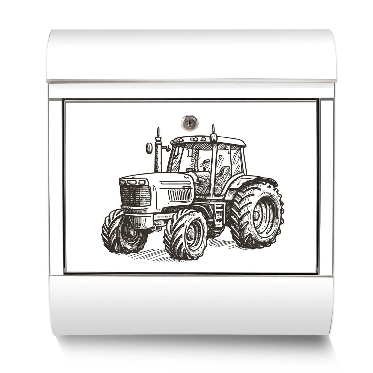 Der banjado Edelstahl Standbriefkasten mit Motiv Motiv Historischer Traktor bietet Ihnen mit seinem Fassungsvermögen genügend Platz auch für große A4 Sendungen. Das integrierte Zeitungsfach eignet sich hervorragend, um unkompliziert die Tageszeitung zu fassen.