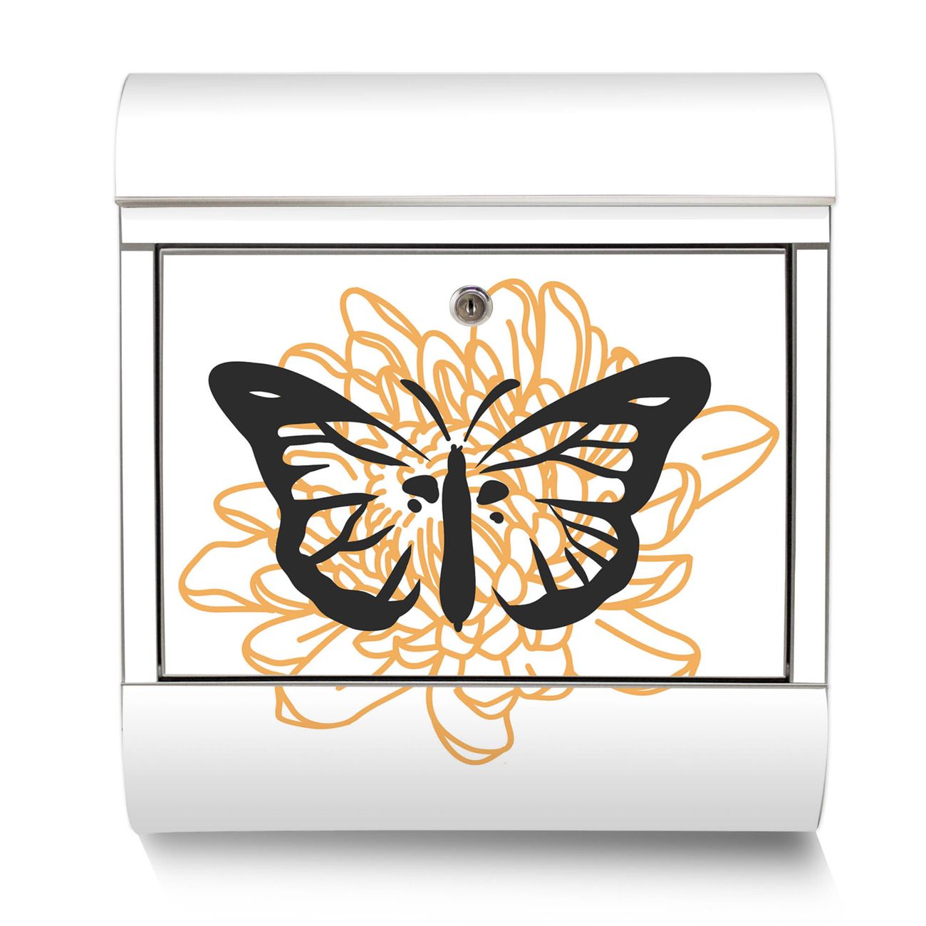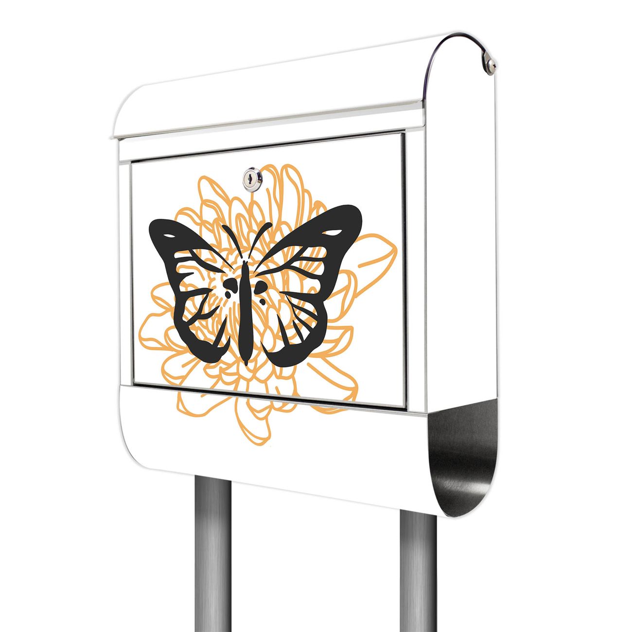 Der Motivstandbriefkasten hat ein sehr ansprechendes und ausgefallenes Design, damit entlocken Sie Ihren Nachbarn und dem Postboten ein Lächeln. Heben Sie Sich ab von der tristen grauen Masse, ohne auf Funktionalität zu verzichten. Der Briefkasten besteht aus hochwertigem 18/0 Edelstahl und die Wetter- und UV-resistenten Folie mit Motiv Schmetterlingsmystik Motiv ist zusätzlich mit einem Schutzlaminat überzogen. Der Standbriefkasten wird mit Montagematerial und zwei Schlüsseln geliefert.