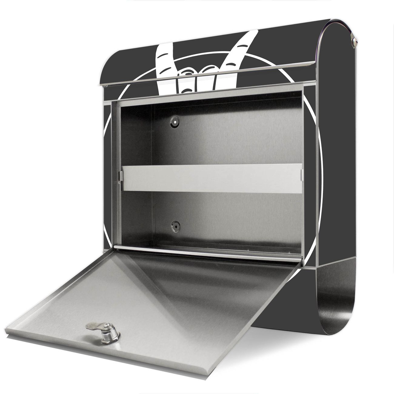 Der banjado Edelstahl Standbriefkasten mit Motiv Motiv Let's Rock bietet Ihnen mit seinem Fassungsvermögen genügend Platz auch für große A4 Sendungen. Das integrierte Zeitungsfach eignet sich hervorragend, um unkompliziert die Tageszeitung zu fassen.