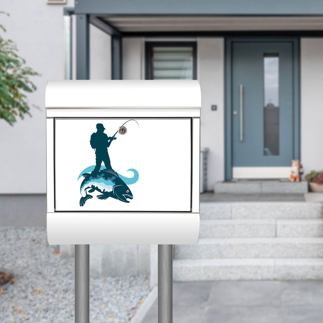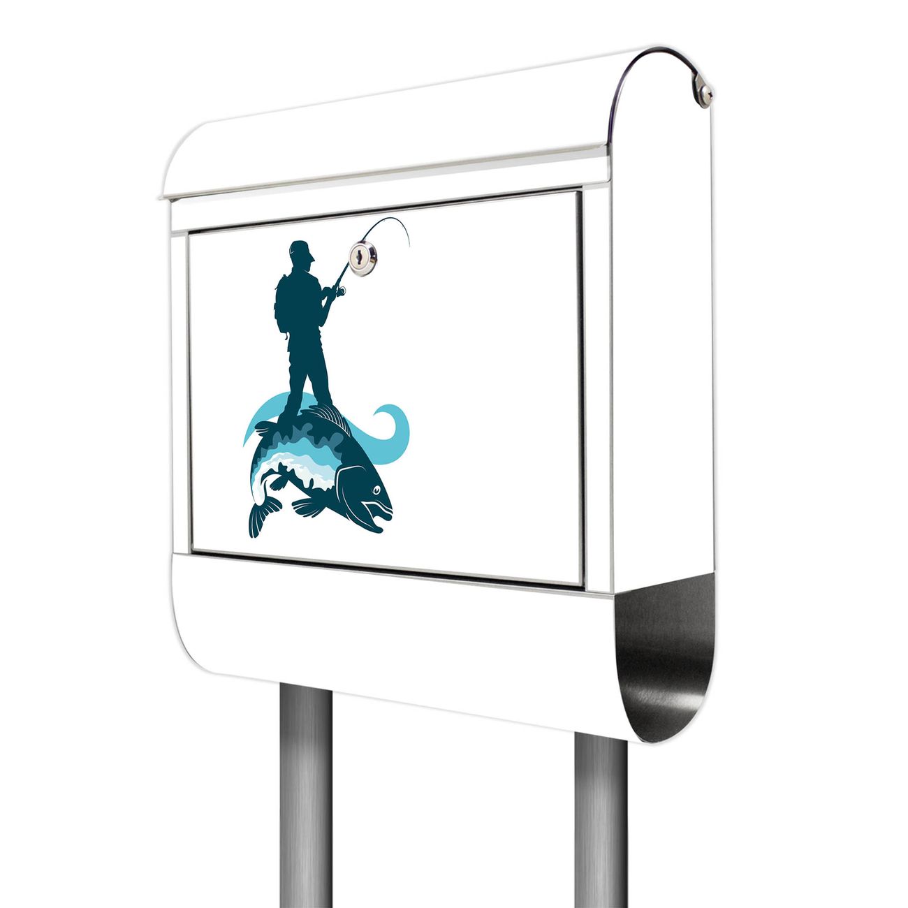 Der Motivstandbriefkasten hat ein sehr ansprechendes und ausgefallenes Design, damit entlocken Sie Ihren Nachbarn und dem Postboten ein Lächeln. Heben Sie Sich ab von der tristen grauen Masse, ohne auf Funktionalität zu verzichten. Der Briefkasten besteht aus hochwertigem 18/0 Edelstahl und die Wetter- und UV-resistenten Folie mit Motiv Der Angler Motiv ist zusätzlich mit einem Schutzlaminat überzogen. Der Standbriefkasten wird mit Montagematerial und zwei Schlüsseln geliefert.