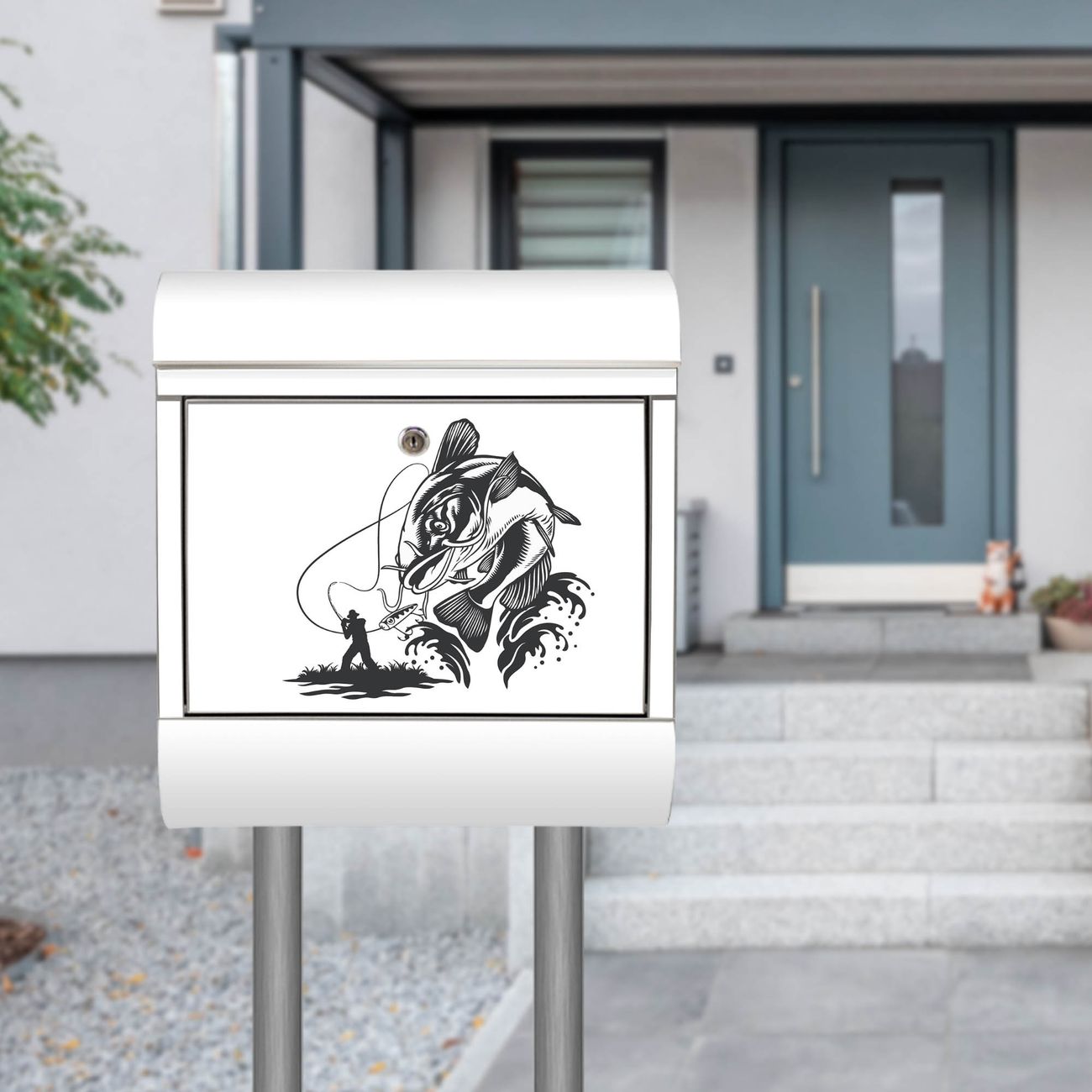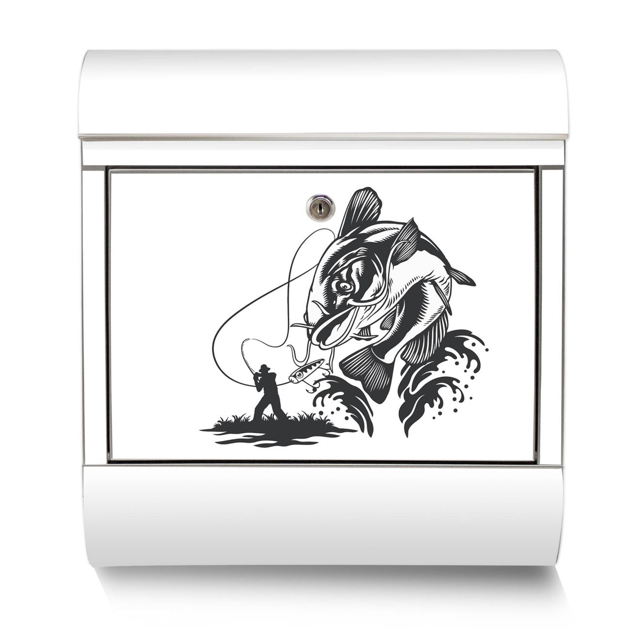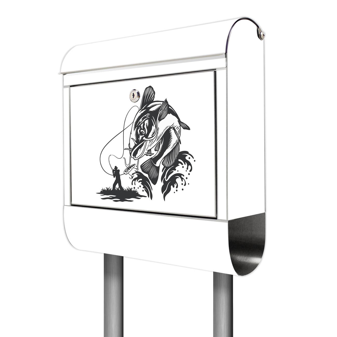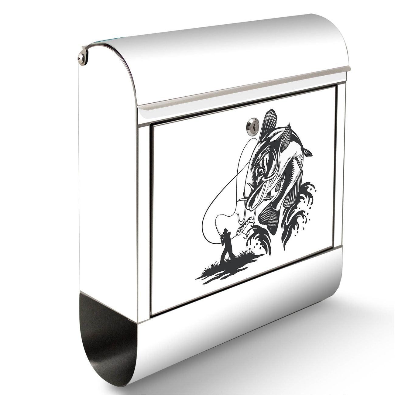 Der Motivstandbriefkasten hat ein sehr ansprechendes und ausgefallenes Design, damit entlocken Sie Ihren Nachbarn und dem Postboten ein Lächeln. Heben Sie Sich ab von der tristen grauen Masse, ohne auf Funktionalität zu verzichten. Der Briefkasten besteht aus hochwertigem 18/0 Edelstahl und die Wetter- und UV-resistenten Folie mit Motiv Fischfang Abenteuer Motiv ist zusätzlich mit einem Schutzlaminat überzogen. Der Standbriefkasten wird mit Montagematerial und zwei Schlüsseln geliefert.