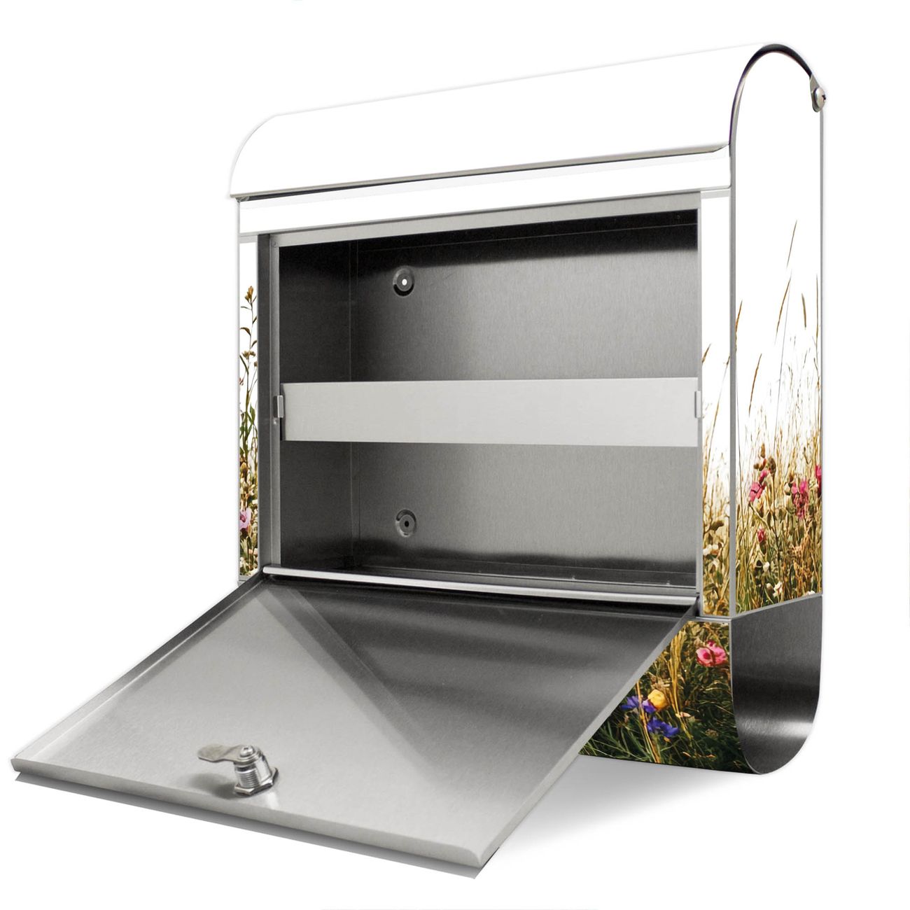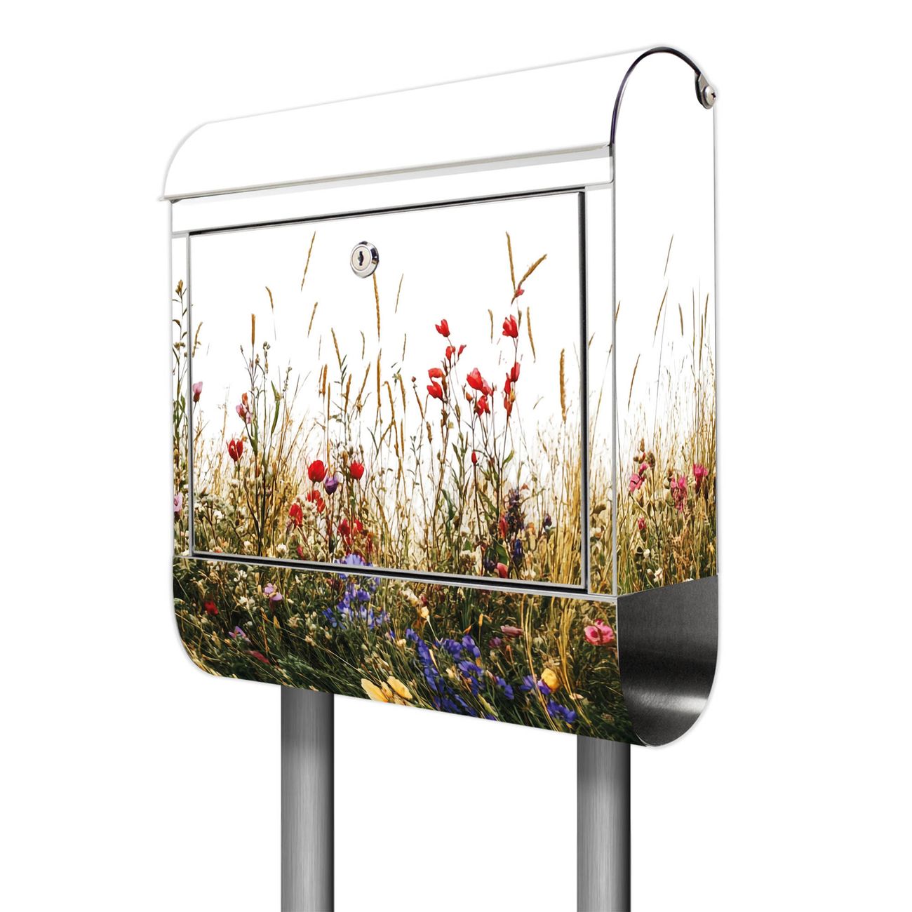 Der Motivstandbriefkasten hat ein sehr ansprechendes und ausgefallenes Design, damit entlocken Sie Ihren Nachbarn und dem Postboten ein Lächeln. Heben Sie Sich ab von der tristen grauen Masse, ohne auf Funktionalität zu verzichten. Der Briefkasten besteht aus hochwertigem 18/0 Edelstahl und die Wetter- und UV-resistenten Folie mit Motiv Sommerliche Blumenwiese Motiv ist zusätzlich mit einem Schutzlaminat überzogen. Der Standbriefkasten wird mit Montagematerial und zwei Schlüsseln geliefert.