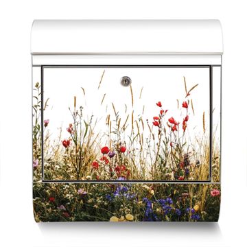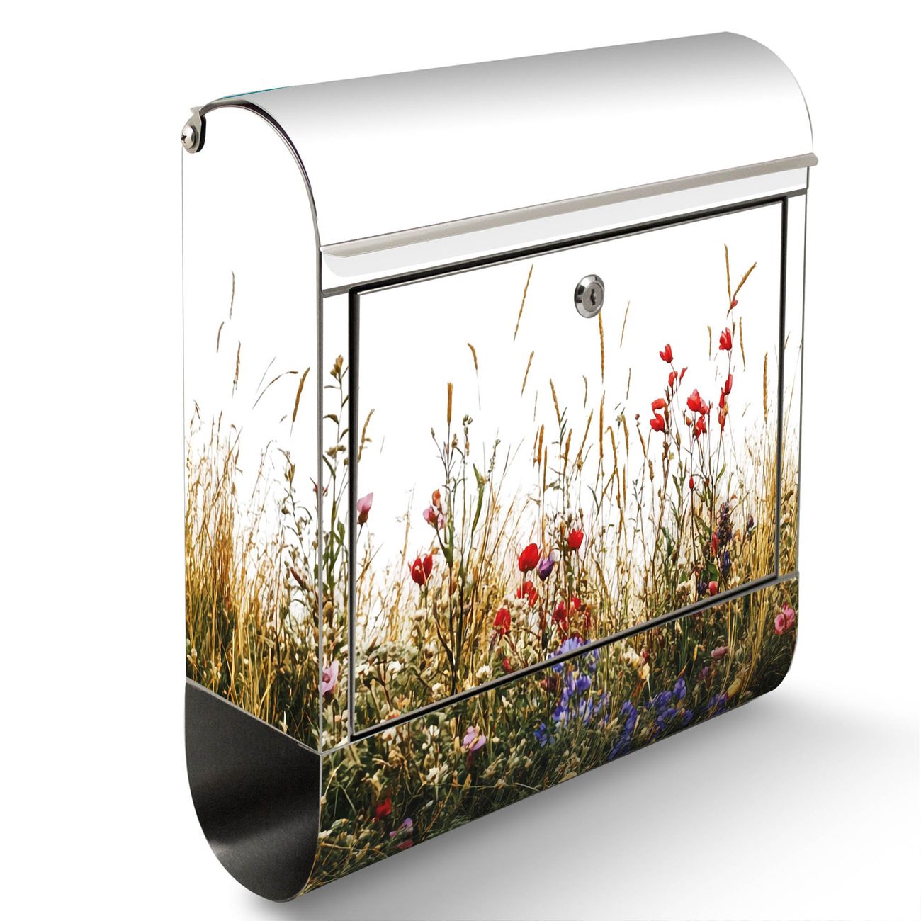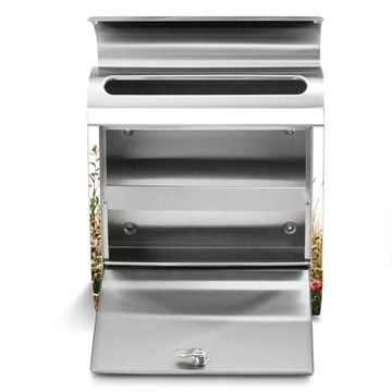 Der banjado Edelstahl Standbriefkasten mit Motiv Motiv Sommerliche Blumenwiese bietet Ihnen mit seinem Fassungsvermögen genügend Platz auch für große A4 Sendungen. Das integrierte Zeitungsfach eignet sich hervorragend, um unkompliziert die Tageszeitung zu fassen.