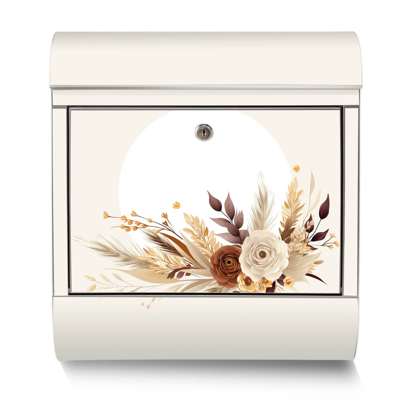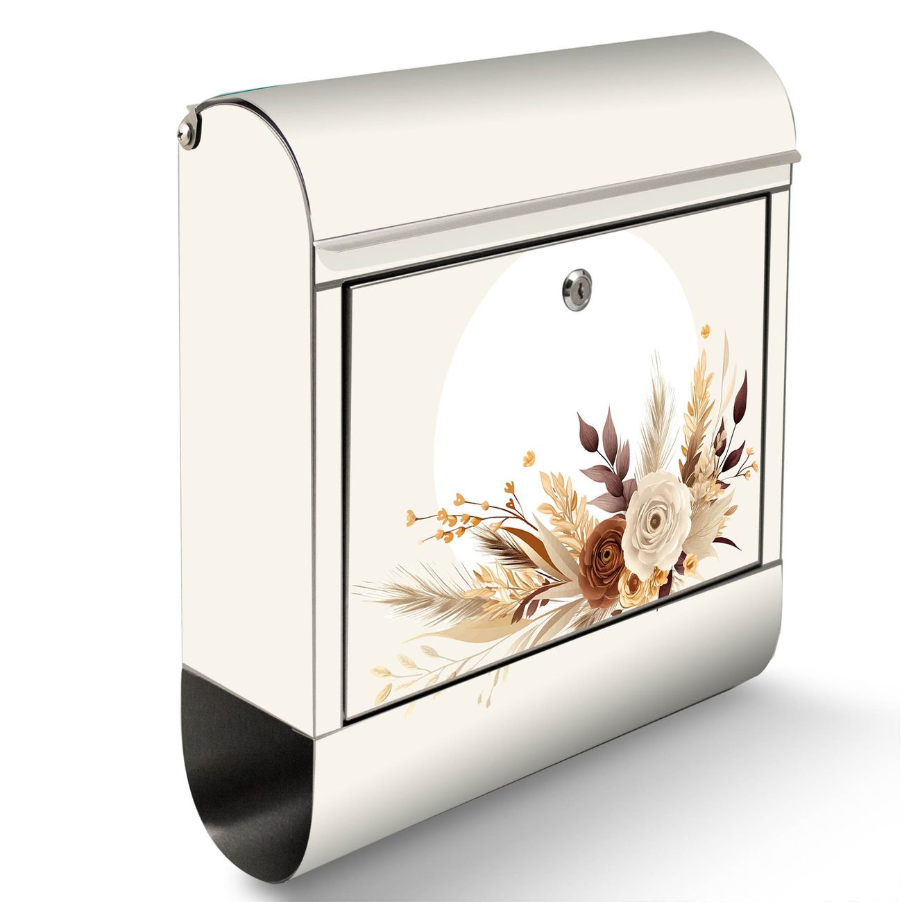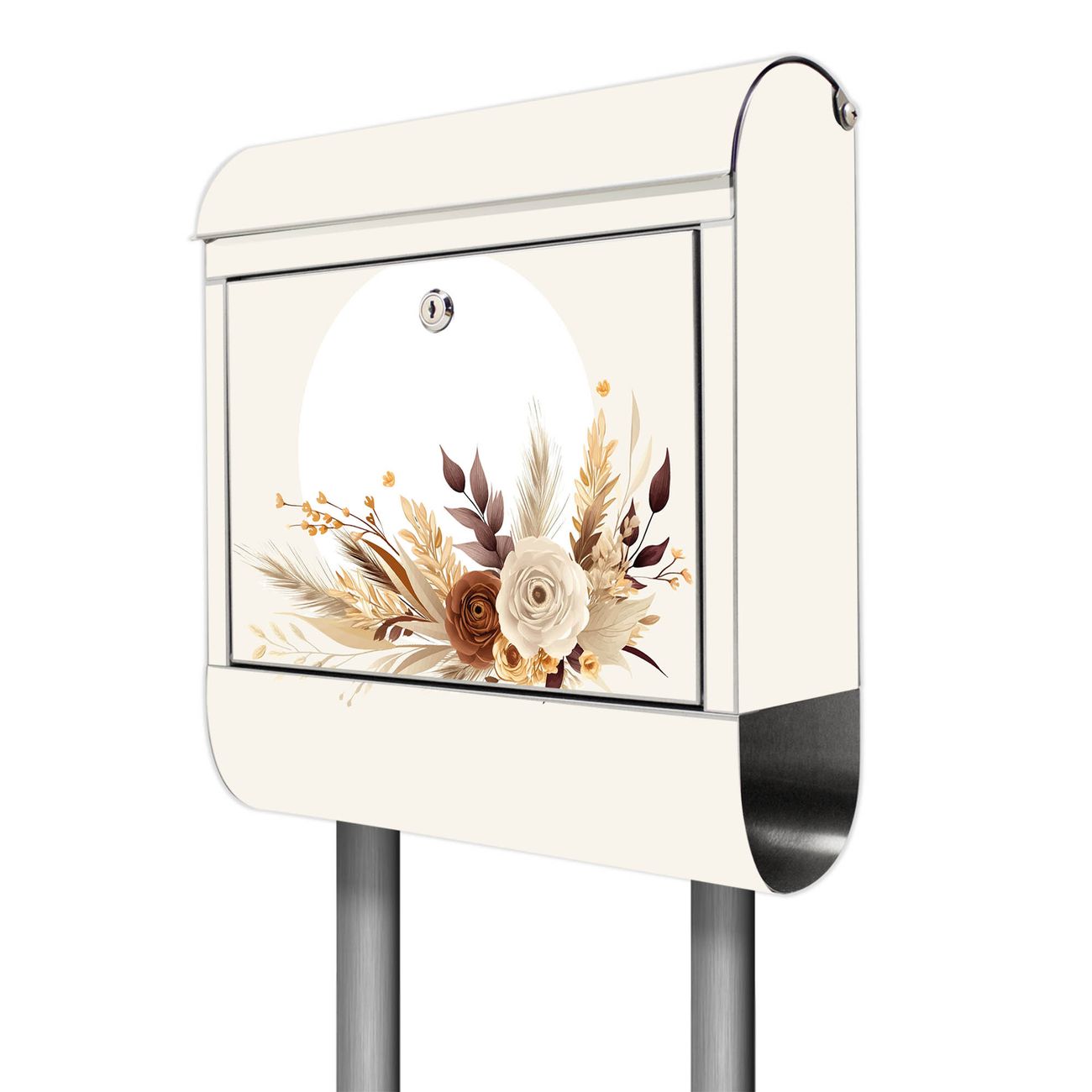 Der Motivstandbriefkasten hat ein sehr ansprechendes und ausgefallenes Design, damit entlocken Sie Ihren Nachbarn und dem Postboten ein Lächeln. Heben Sie Sich ab von der tristen grauen Masse, ohne auf Funktionalität zu verzichten. Der Briefkasten besteht aus hochwertigem 18/0 Edelstahl und die Wetter- und UV-resistenten Folie mit Motiv Herbstliches Blumenarrangement Motiv ist zusätzlich mit einem Schutzlaminat überzogen. Der Standbriefkasten wird mit Montagematerial und zwei Schlüsseln geliefert.