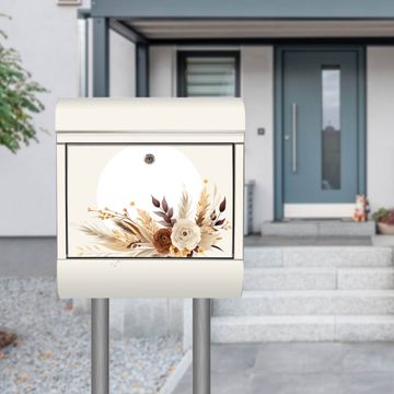 Der banjado Edelstahl Standbriefkasten mit Motiv Motiv Herbstliches Blumenarrangement bietet Ihnen mit seinem Fassungsvermögen genügend Platz auch für große A4 Sendungen. Das integrierte Zeitungsfach eignet sich hervorragend, um unkompliziert die Tageszeitung zu fassen.