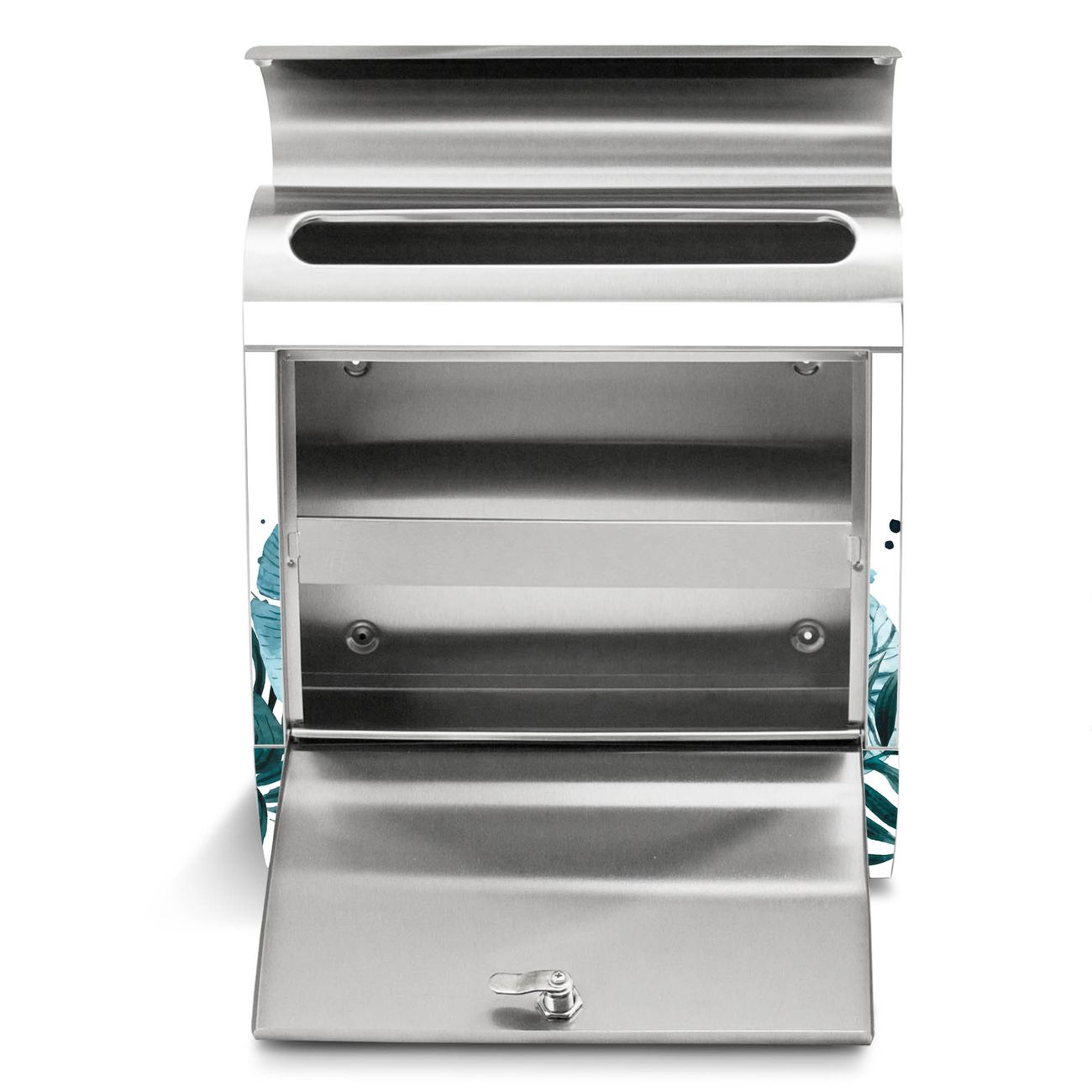 Der banjado Edelstahl Standbriefkasten mit Motiv Motiv Tropisches Aquarell bietet Ihnen mit seinem Fassungsvermögen genügend Platz auch für große A4 Sendungen. Das integrierte Zeitungsfach eignet sich hervorragend, um unkompliziert die Tageszeitung zu fassen.