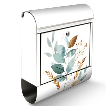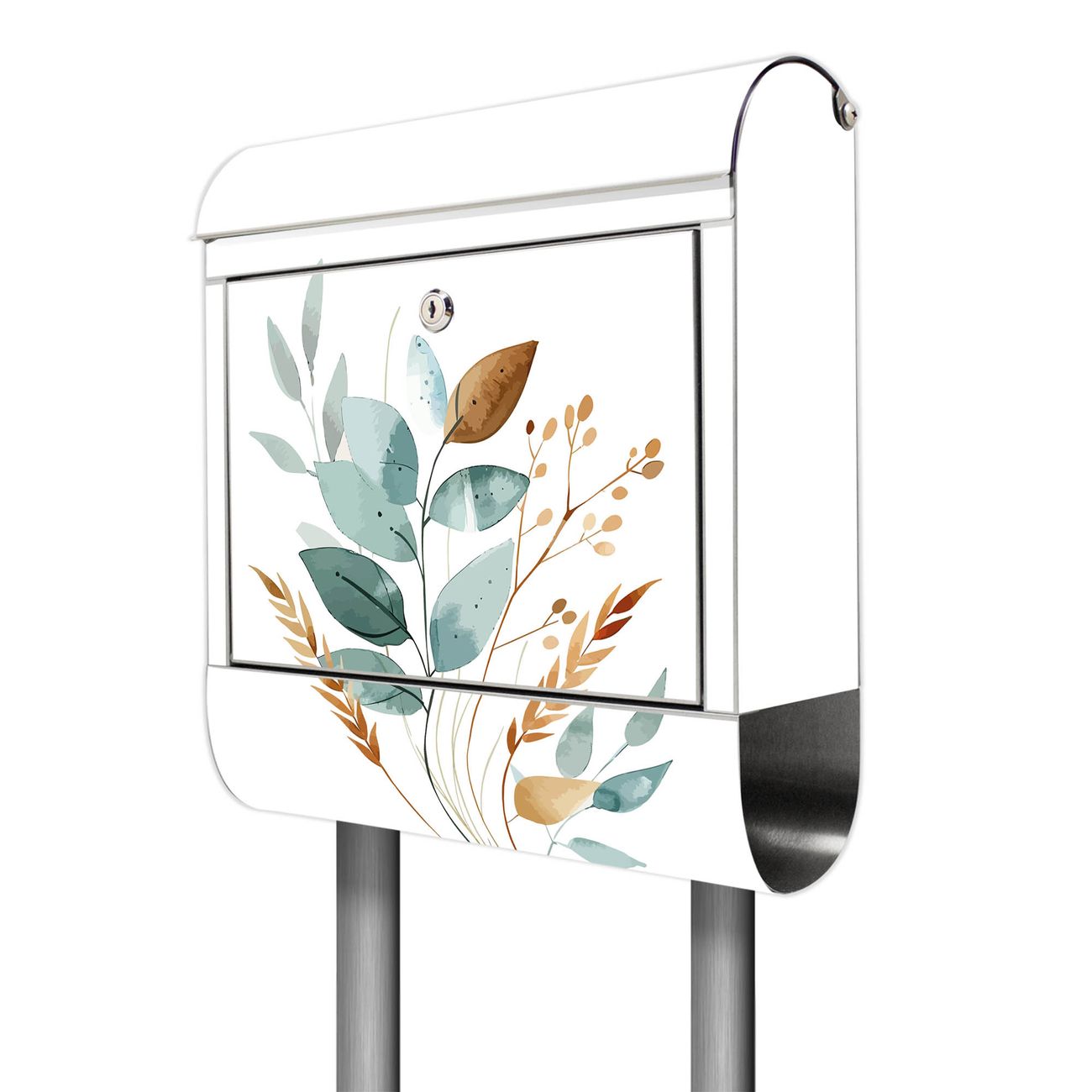 Der Motivstandbriefkasten hat ein sehr ansprechendes und ausgefallenes Design, damit entlocken Sie Ihren Nachbarn und dem Postboten ein Lächeln. Heben Sie Sich ab von der tristen grauen Masse, ohne auf Funktionalität zu verzichten. Der Briefkasten besteht aus hochwertigem 18/0 Edelstahl und die Wetter- und UV-resistenten Folie mit Motiv Minimalistische Blätter Motiv ist zusätzlich mit einem Schutzlaminat überzogen. Der Standbriefkasten wird mit Montagematerial und zwei Schlüsseln geliefert.