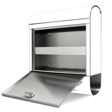 Der banjado Edelstahl Standbriefkasten mit Motiv Motiv Minimalistische Blätter bietet Ihnen mit seinem Fassungsvermögen genügend Platz auch für große A4 Sendungen. Das integrierte Zeitungsfach eignet sich hervorragend, um unkompliziert die Tageszeitung zu fassen.