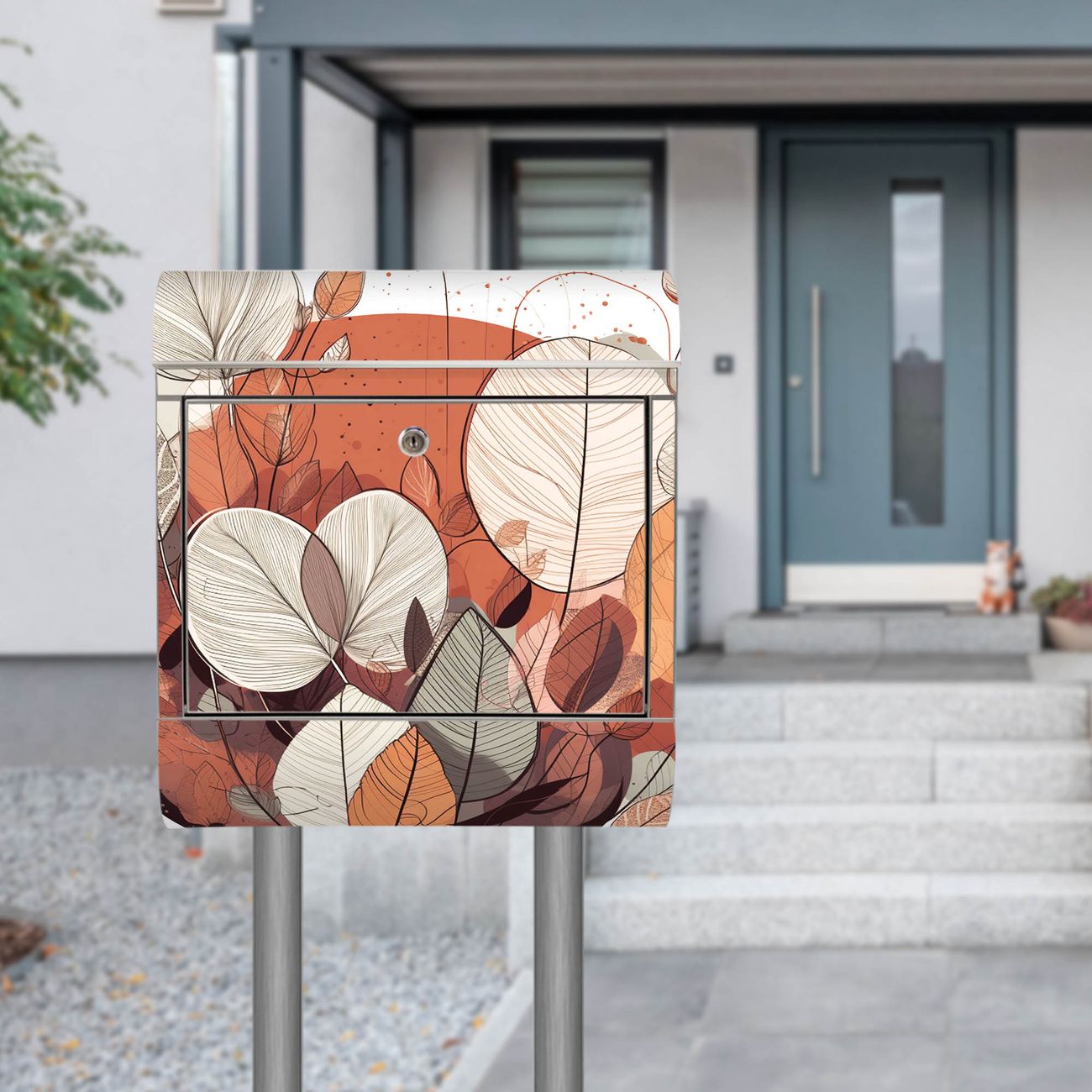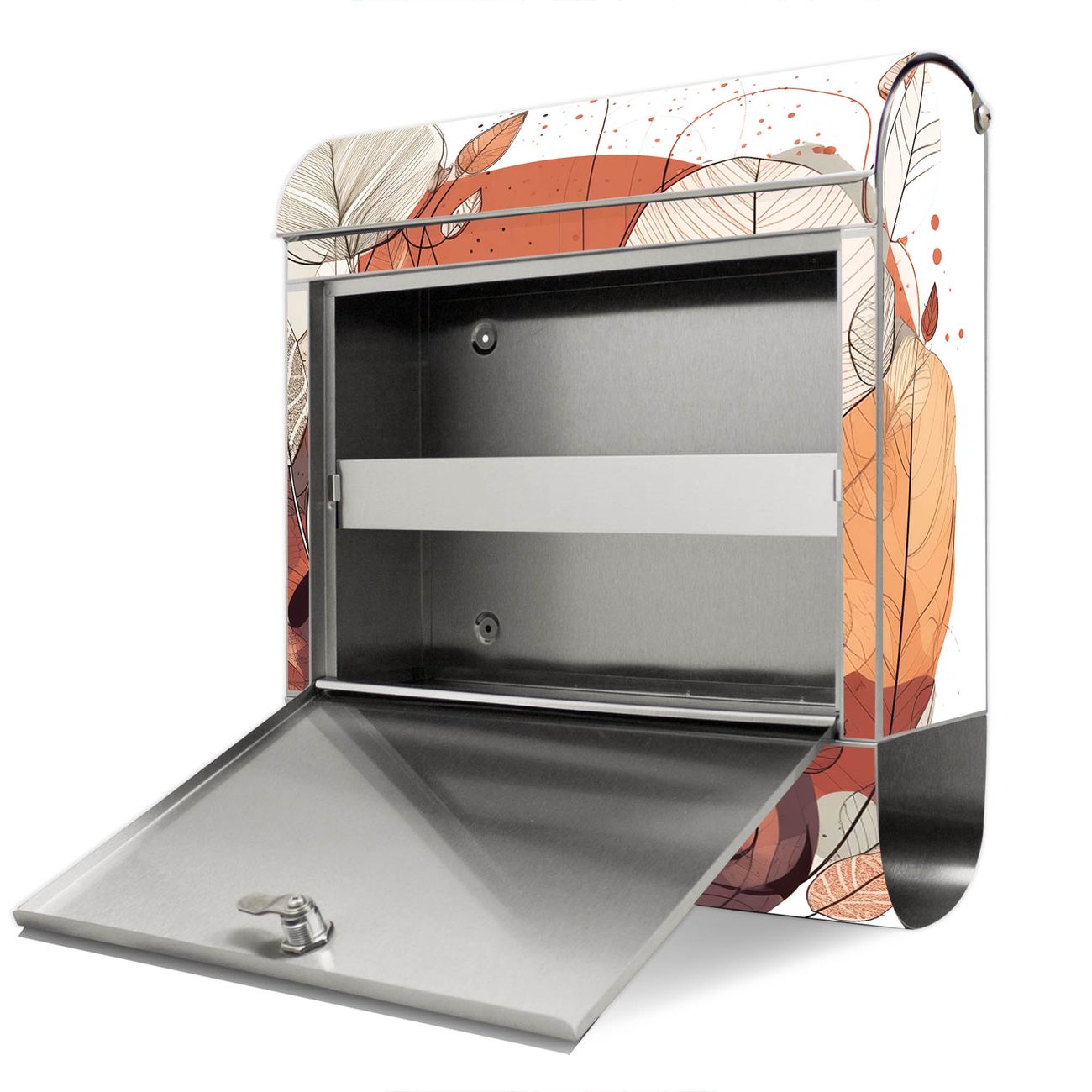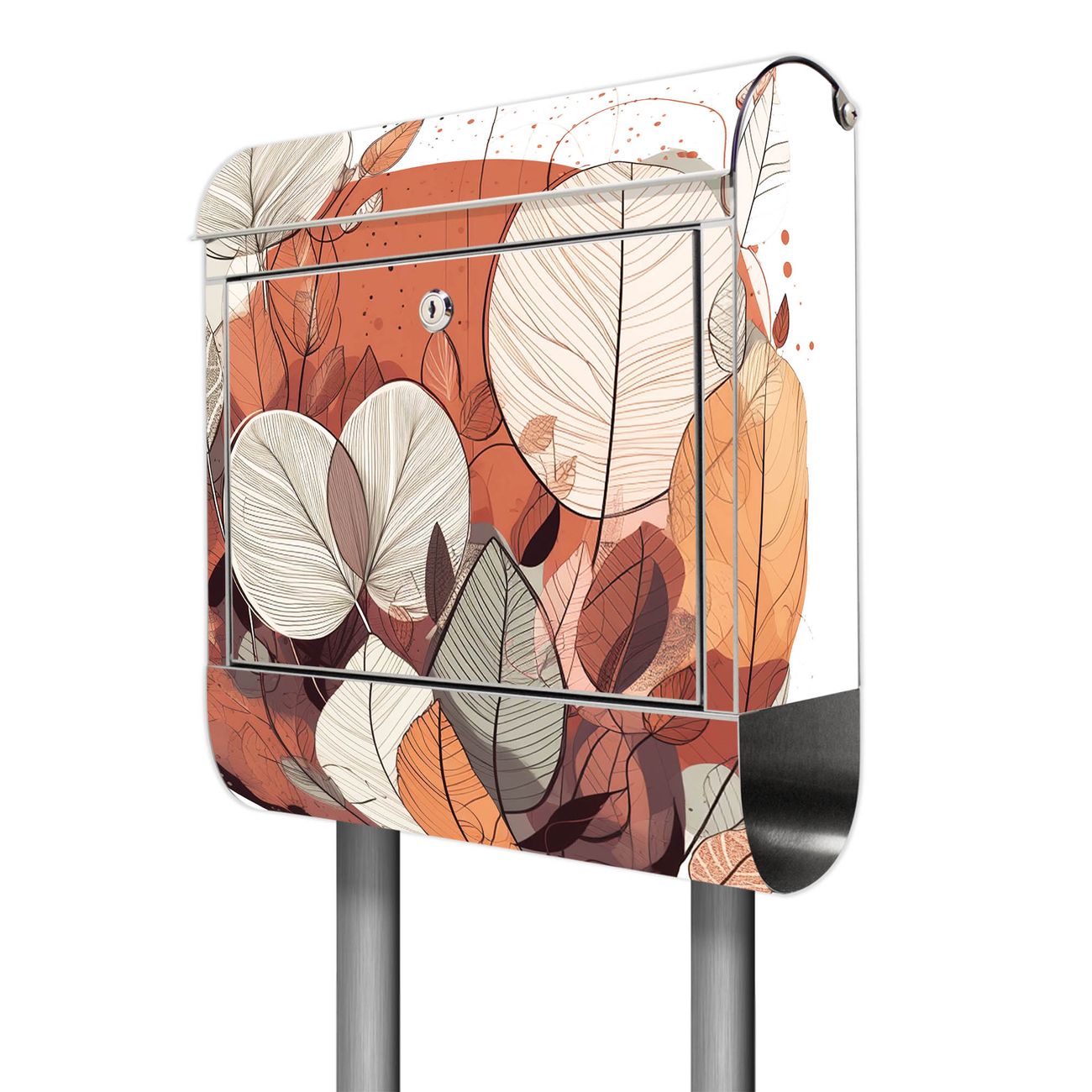 Der Motivstandbriefkasten hat ein sehr ansprechendes und ausgefallenes Design, damit entlocken Sie Ihren Nachbarn und dem Postboten ein Lächeln. Heben Sie Sich ab von der tristen grauen Masse, ohne auf Funktionalität zu verzichten. Der Briefkasten besteht aus hochwertigem 18/0 Edelstahl und die Wetter- und UV-resistenten Folie mit Motiv Herbstliche Blätterpracht Motiv ist zusätzlich mit einem Schutzlaminat überzogen. Der Standbriefkasten wird mit Montagematerial und zwei Schlüsseln geliefert.